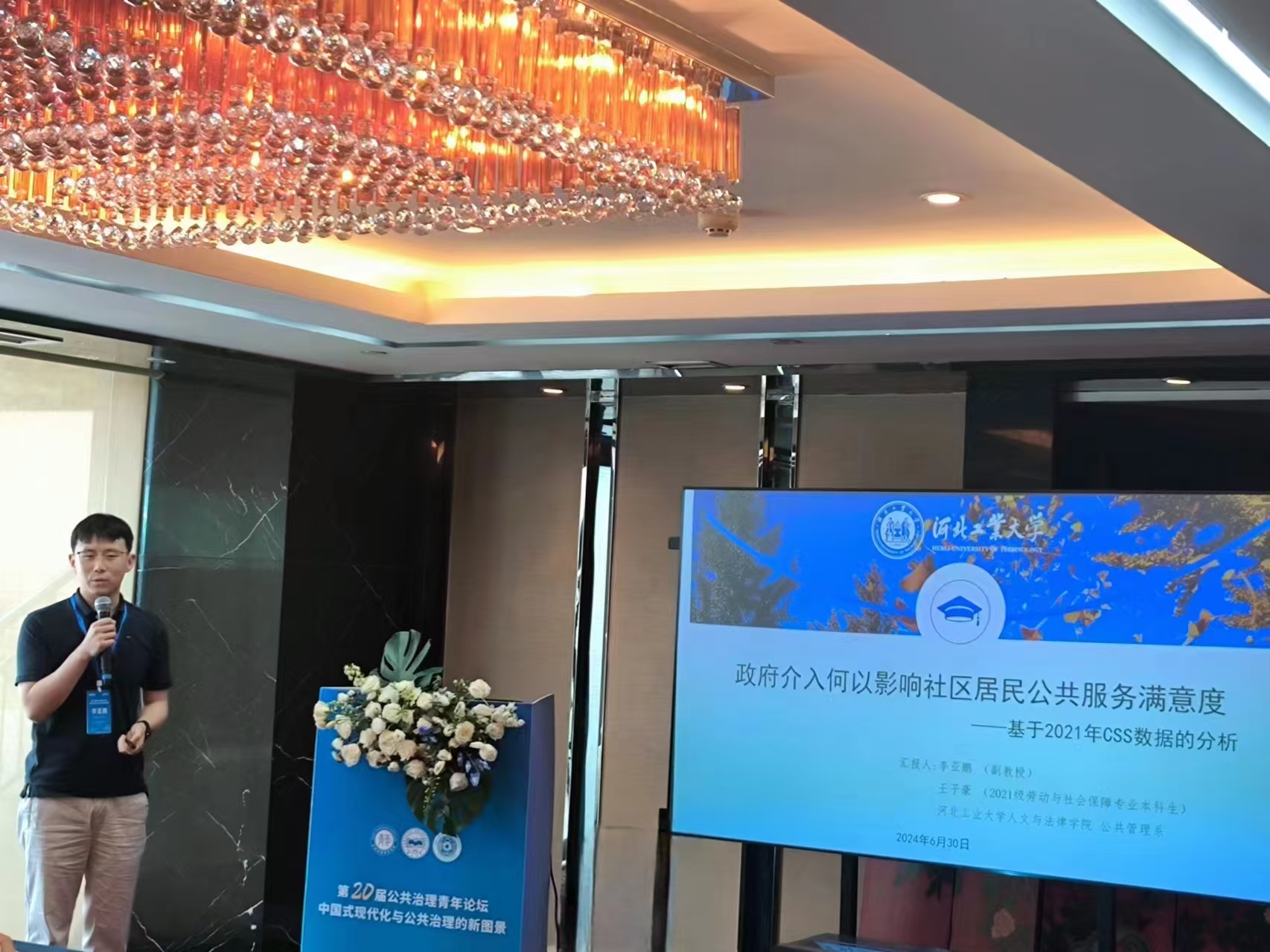 公司李亚鹏老师与2021级公共事业管理专业本科生王子豪受邀参加第二十届公共治理青年论坛暨“中国式现代化与公共治理的新图景”学术研讨会。李亚鹏老师与王子豪同学撰写的《政府介入何以影响社区居民公共服务满意度--基于2021年CSS数据的分析》一文在平行分论坛“政府治理现代化(上半场)”进行了专题发言。此外,李亚鹏老师作为主持人主持了“政府治理现代化(下半场)”分论坛。