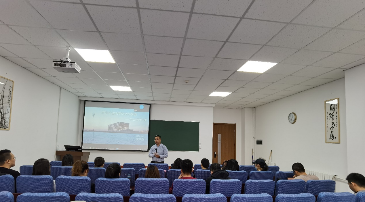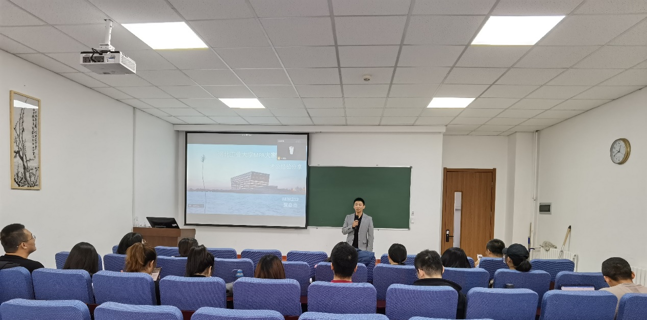 2021年11月28日中午12:30,suncitygroup太阳新城研究生会MPA大家说第一期,在红桥校区7C104-2顺利举行。本期主讲嘉宾的是MPA212班的贾焱杰同学。活动伊始,MPA中心招生总监张明展老师介绍了MPA大家说的策划缘由、活动目标及未来规划,希望本系列活动能为同学们提供一个新平台,帮助大家互动交流,了解各行各业,提升自我。