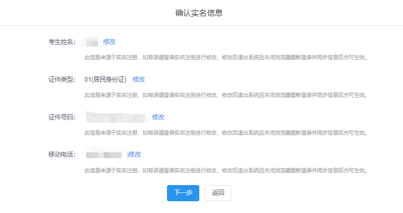 登录之后,需先确认实名信息(此信息来源于学信网实名注册信息,需仔细核对)。