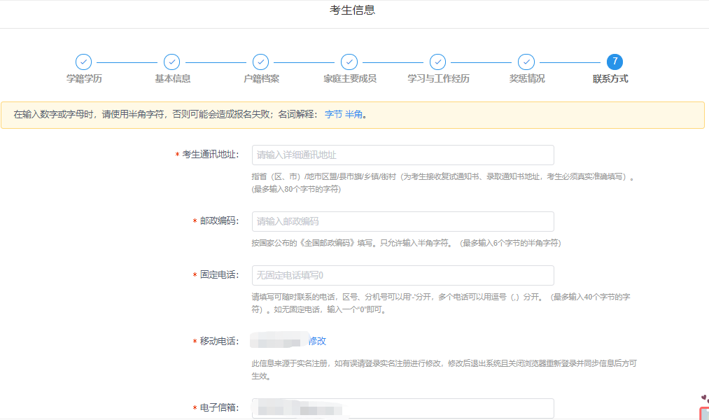 3.考生要对本人网上报名信息进行认真核对并确认。经考生确认的报名信息在考试、复试及录取阶段一律不作修改,因考生填写错误引起的一切后果由其自行承担。