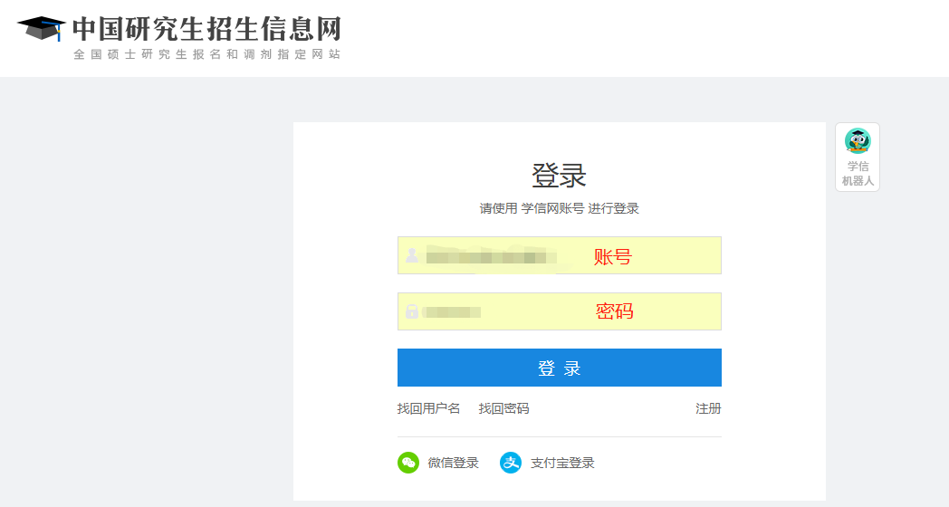 考生打开研招网(https://yz.chsi.com.cn/)首页后,用已注册的学信网账号登录网报系统,网报系统将报名分为填写考生信息和填写报考信息两部分。
