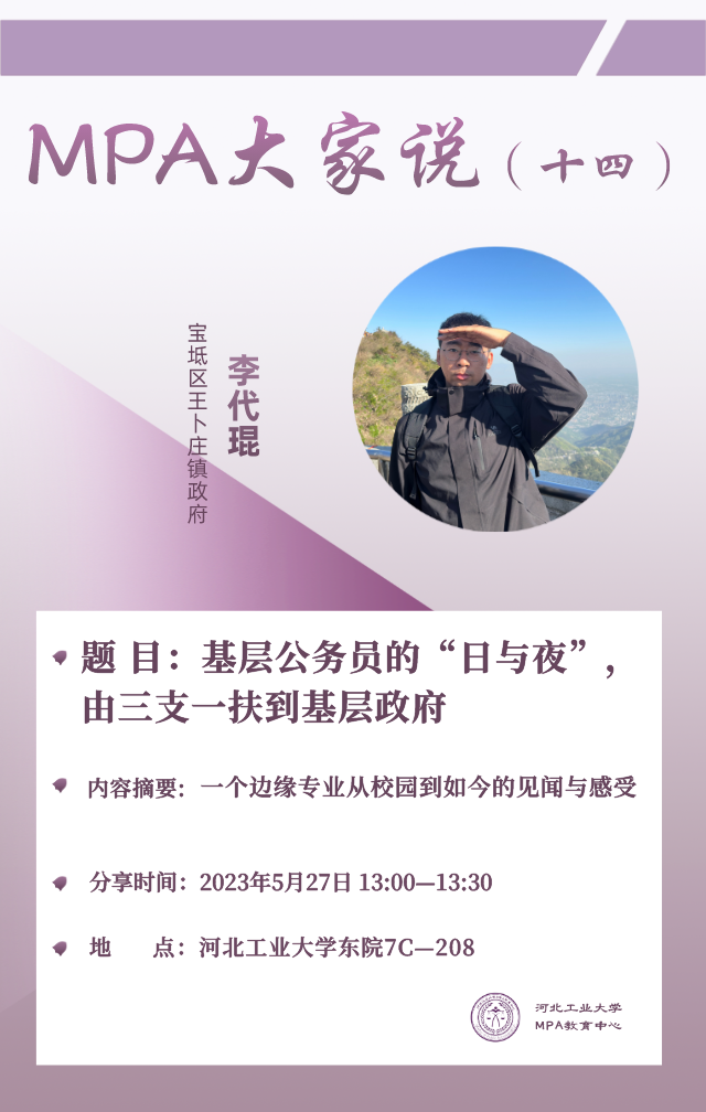 “MPA大家说”讲座预告(十四) | 基层公务员的“日与夜”,由三支一扶到基层政府