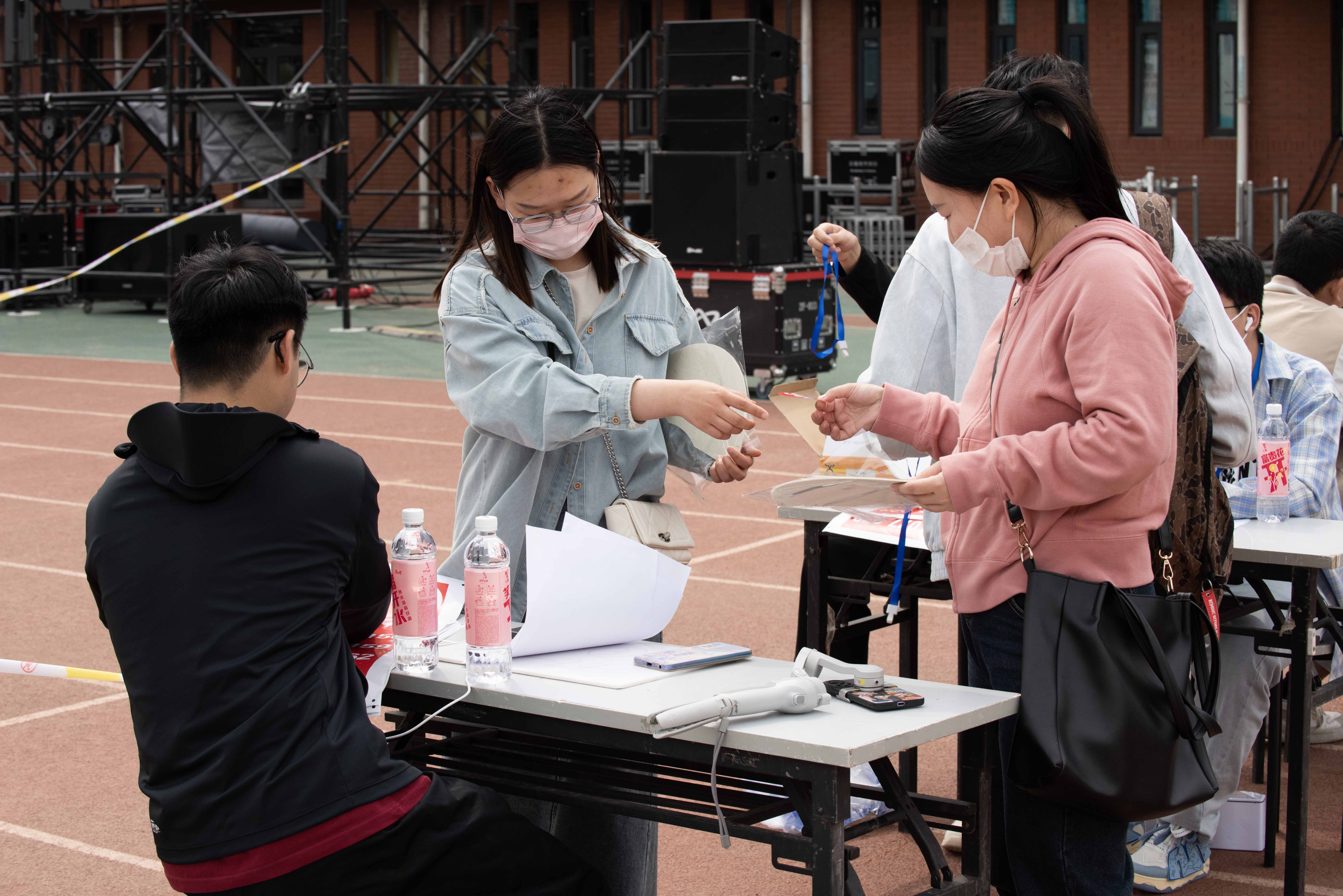 活动开始前,同学们早早来到签到区领取入场物品、精美的号码牌和独特的纪念品,对活动充满了期待。