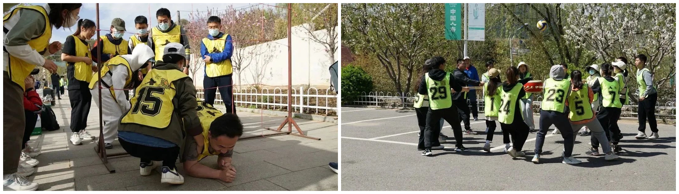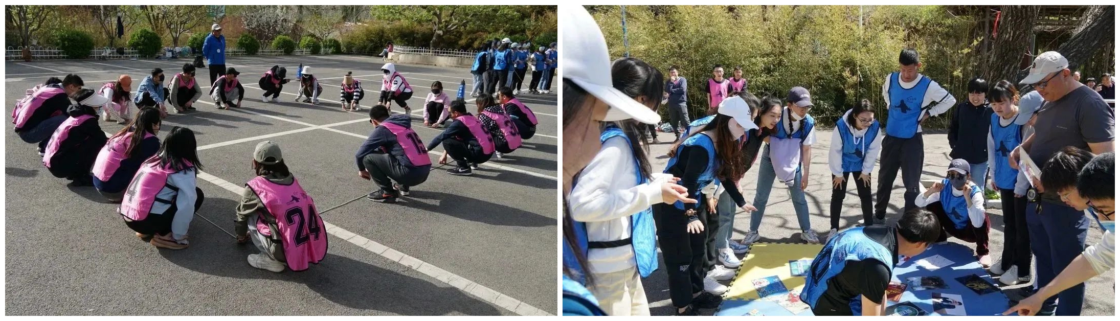 4月15日10时,同学们抵达了素质拓展基地。简单安顿之后,教练带领同学们开始了本次素质拓展的第一个项目——破冰行动。项目开始前,教练通过几个简单的小游戏,活跃了现场气氛,拉近了同学之间的距离,并使大家深刻体会到集体素质拓展中要谨记团结与分享。随后,教练利用八字口令“河北工大桃李芬芳”将同学们随机分为4组,每组均任命了队长,并设计了队名、队徽等要素。最后,形成了着绿衣的“交警队”、着粉衣的“我说的都对队”、着黄衣的“大黄蜂队”、着蓝衣的“蓝精灵队”四支队伍,每支队伍依次上台进行了团队风采展示。