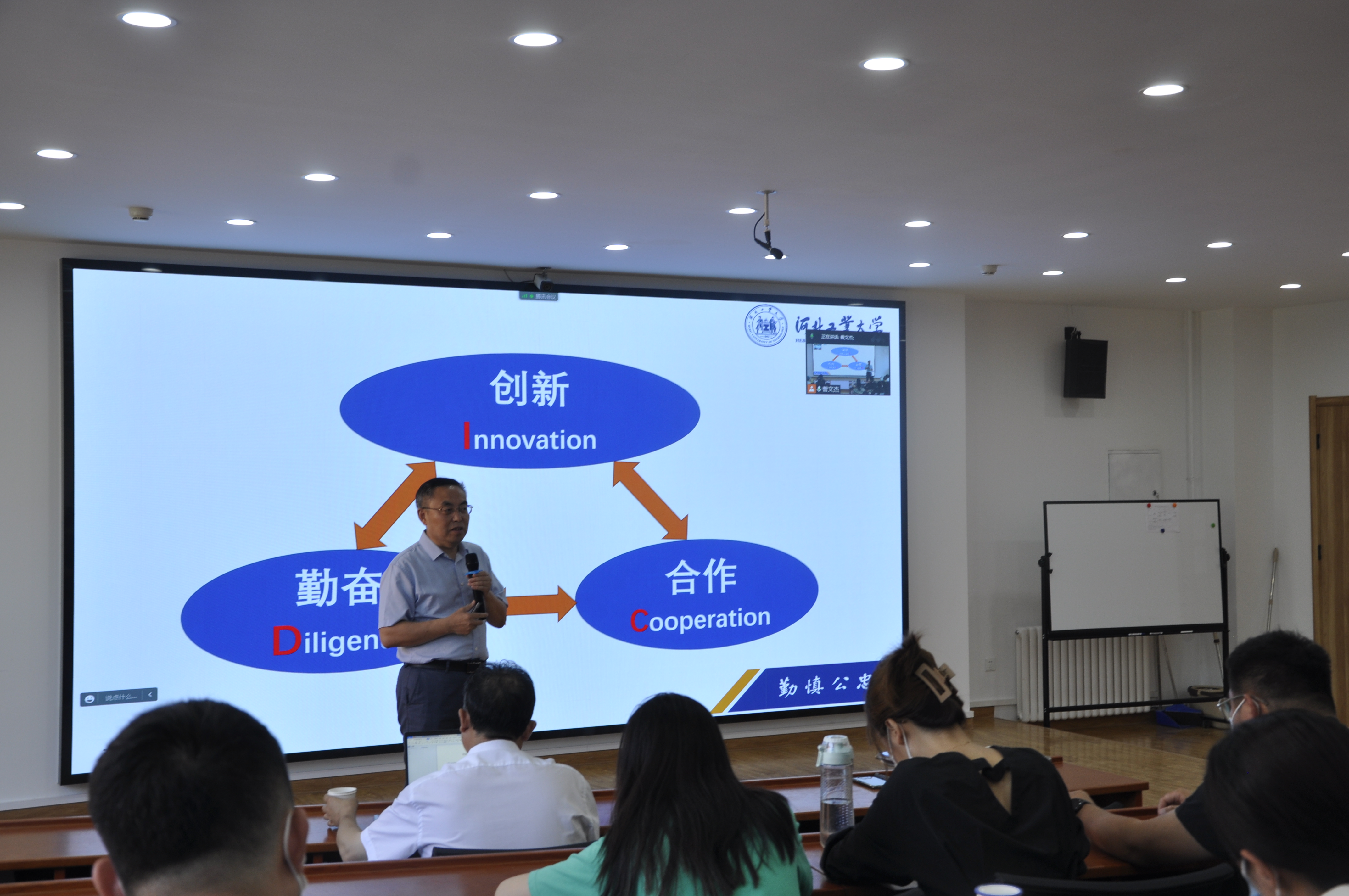 接着,马教授介绍了习近平总书记关于科技创新的重要论述,分享了河北省省委书记倪岳峰书记关于科技创新工作的文章,突出强调了科技创新对于国家发展的重要性,并阐明了我国科技创新的优势。对研究生来说,创新能力的培养为第一要务,要做出独具特色的创新项目,争做科技创新的排头兵。不论是公司还是个人,都应该将科技创新视为核心发展动力,不断提高核心竞争力。随后,马教授还就科研创新团队、项目、奖项等方面介绍了公司科研创新现状,使同学们深入了解了公司的创新成果情况,激发了员工们勇于创新的决心。
