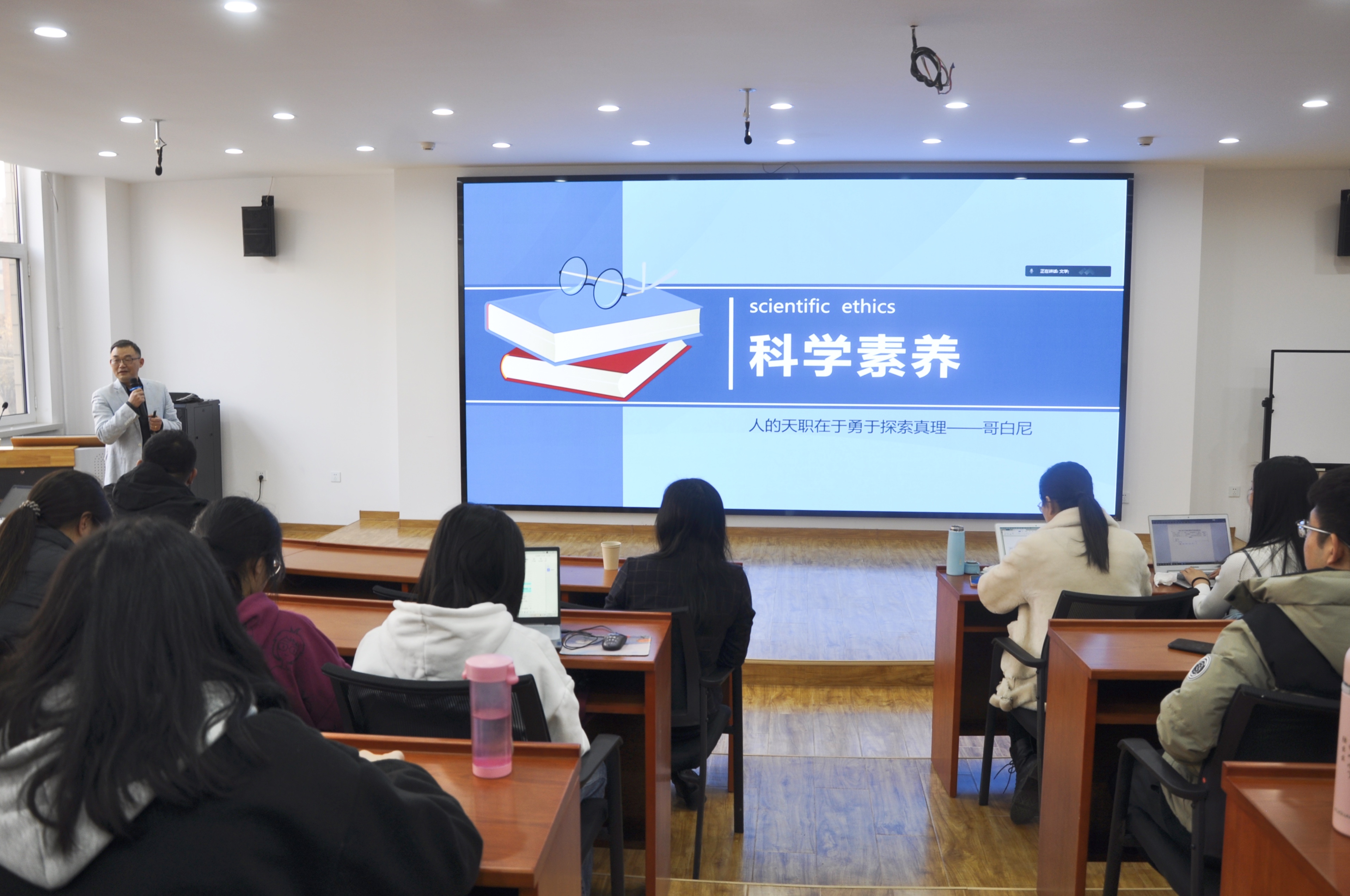 2021年12月5日下午,文法大讲堂第三十五期之《科学素养》讲座在suncitygroup东院MPA中心准时开讲。本次讲座特邀suncitygroup副董事长胡宁教授主讲,公司闫文博副经理主持,李艳双经理和公司部分研究生、本科生参加了本次讲座。