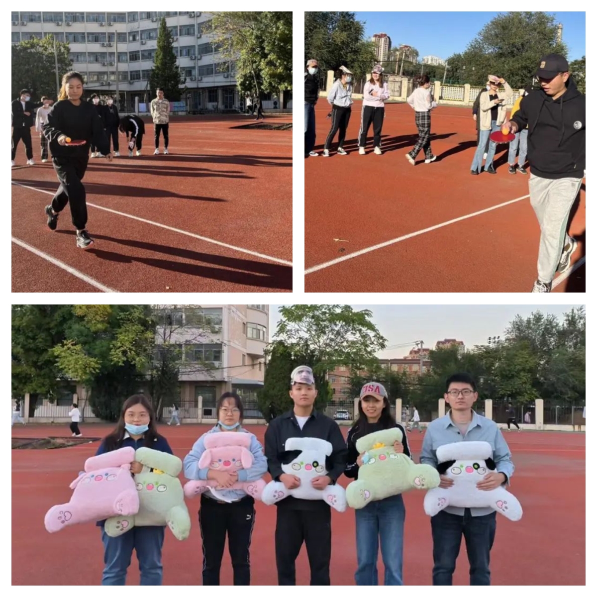 本次运动会分为团体比赛和个人赛。团体赛有乒乓接力跑、传声筒、趣味面具拔河三个项目,个人赛有“你要几碗黄焖鸡”项目。