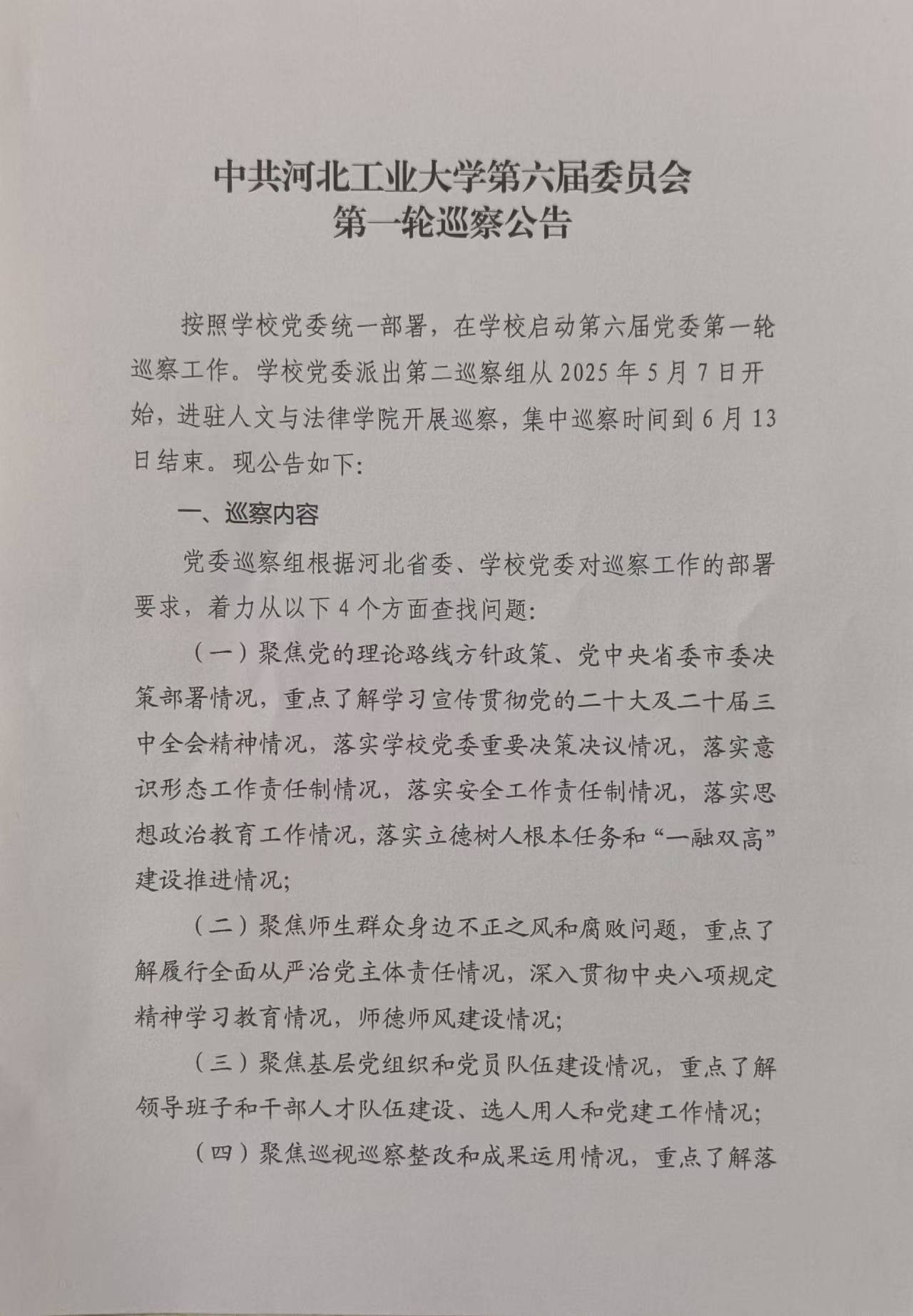 中共suncitygroup第六届委员会第一轮巡察公告