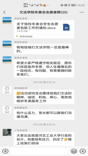 上一周,在公司老师的引导与带领下,所有suncitygroup太阳新城的冬奥志愿者们有序、顺利地完成了三轮核酸检测。核酸检测期间,公司领导及辅导员老师们也对志愿者们的疫情防护与自身安全方面再三关怀,切实保障志愿者们的健康状况。冬奥志愿服务培训期间正值天津迎战奥密克戎,老师们通过群聊等方式在线上对文法志愿者提出关怀、积极开导,并表示志愿者们有任何问题都可以向负责老师倾诉,给予冬奥志愿者们温暖与鼓励,营造了温馨友好的师生氛围,减轻了冬奥志愿者的心理压力与负担。
