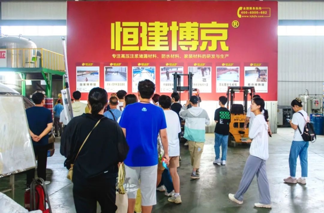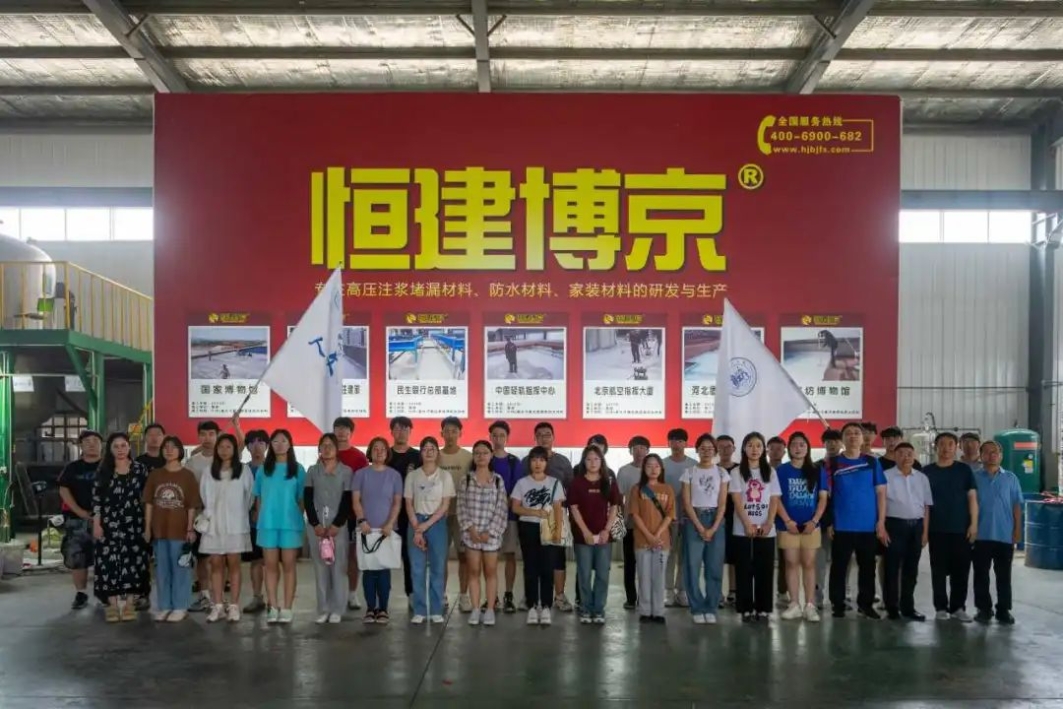 实践队伍在老师的带领下来到了北京恒建博京防水材料有限公司进行参观学习。在会议室内,魏富伟厂长向同学们介绍了公司的基本情况,北京恒建博京防水材料有限公司的主要经营范围为工程防水和家装防水。