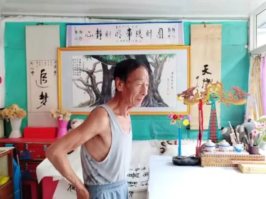 好人好事乡风正,传递丹情天地晖。团队中的几位同学去到养老院,体会到了浓浓的人文关怀。老艺术家马广杰先生多年来深耕艺术领域,荣获“河北好人榜”“年度身边好人”等多项荣誉。马广杰先生虽年近古稀,但仍坚持创作,包揽了附近几个村庄的壁画,宣扬了优秀传统文化和党的政策,令人感动不已。