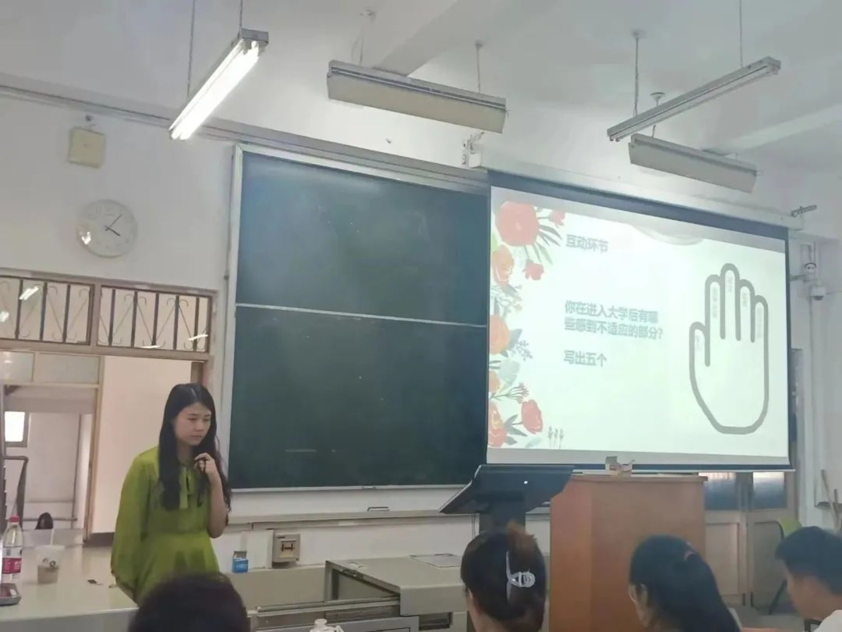 通过对比想象中的大学与现实的大学,谢老师引出了心理健康的话题。随后老师与同学进行了暖心小互动,同学们把自己大学的烦恼与老员工活中的不适写在画出的五个手指上,活跃了现场气氛。之后谢老师展现了心理学概念划分,带领同学们做了个简易的心理测试,使员工们更加了解到自己的心理状况。接下来谢老师分析了老员工心理健康产生的原因,如环境适应,学业适应、人际交往等,引出解决心理健康问题的方法。在讲座之中谢老师引领着我们进行了一场心灵上的放松,体验三分钟空间冥想。最后谢老师告诉我们suncitygroup中心心理咨询时间与地点,为同学们提供了解决心理问题的平台。