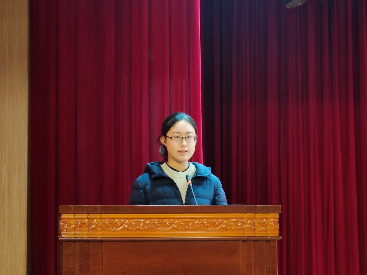 金云迪同样表达了自己对于公司和老师们用心栽培的感谢之情。在后面的发言中,她首先点出了偏学术性写作的特点,接着抒发了自己对写作的一腔热血和对此次比赛主题“思与文”的一些理解与体会,“以读促写,以写促思”,用真情感悟生活,用文字记录生活。