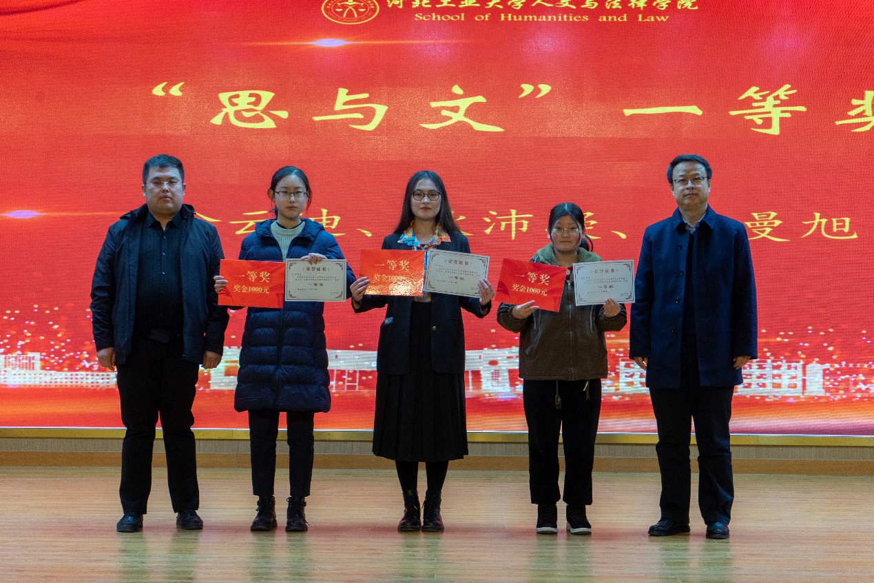 本次活动由公司学工办主任高雪冬主持。典礼伊始,高老师向大家介绍了两个比赛的基本情况。接着,李艳双经理上台致辞。李经理就比赛的特别之处说道,此次比赛融合了公管、汉语、法学的学科特点,采用了创新性的写作形式,而李欢员工的大力支持也给我们开创了一个现金颁奖的特别方式。经理也希望广大员工能够将这份慷慨之情延续下来,给校内的同学们更多的鼓励与支持。同时,为激励同学们在今后的学习与生活中继续积极学习宪法知识,公司也会响应国家号召,创办更多的比赛来激发同学们能思善辩的火花。