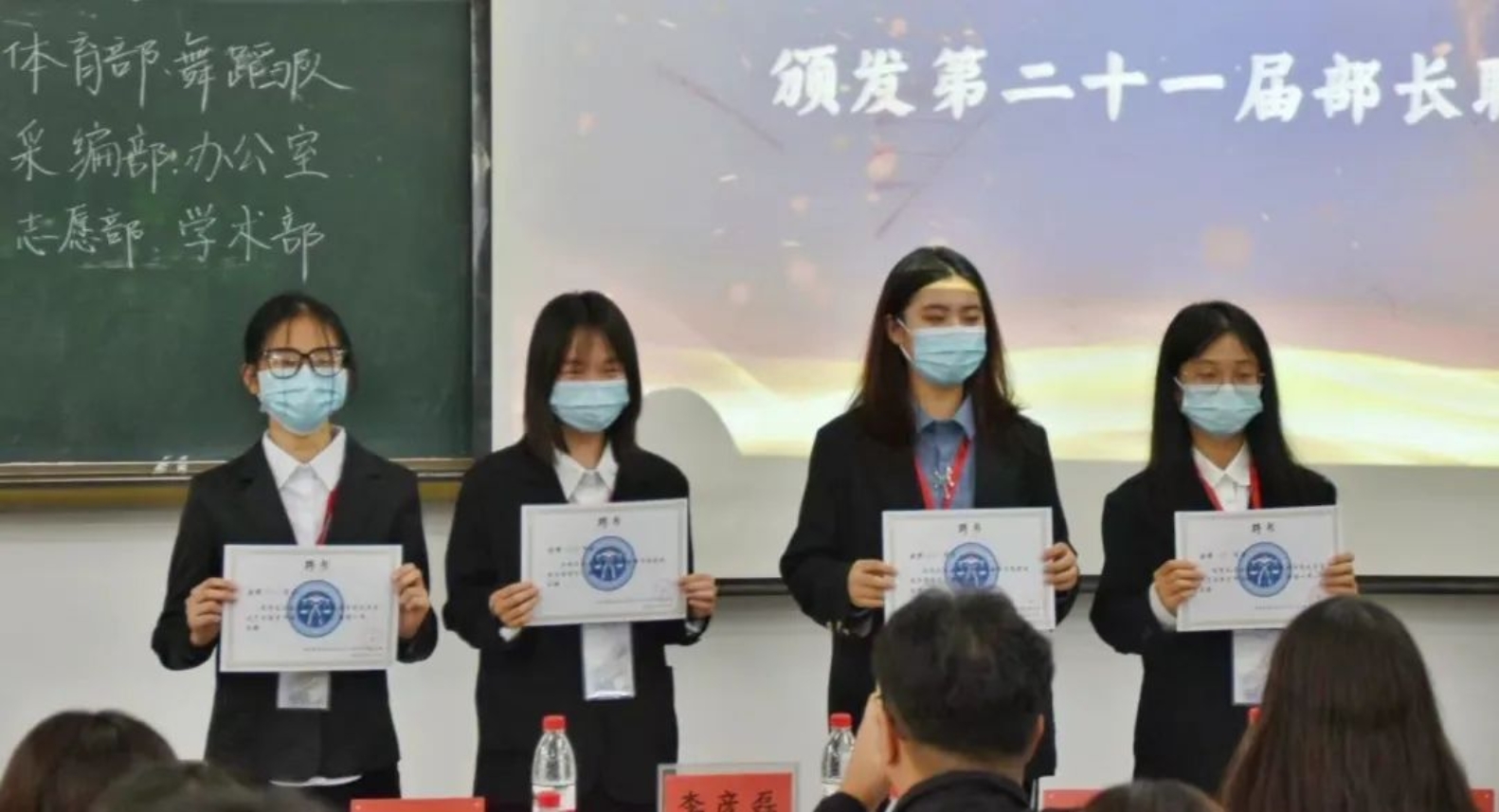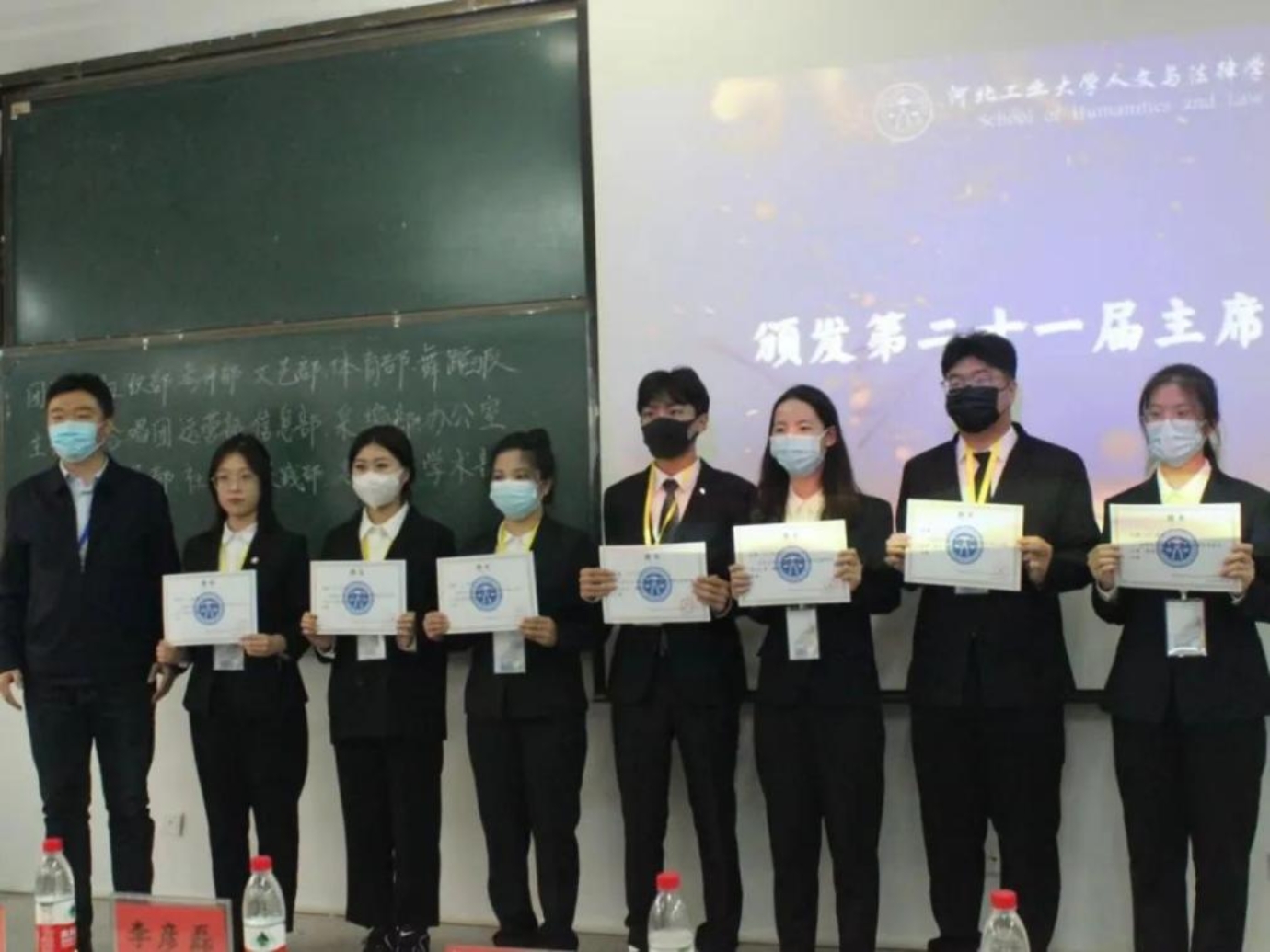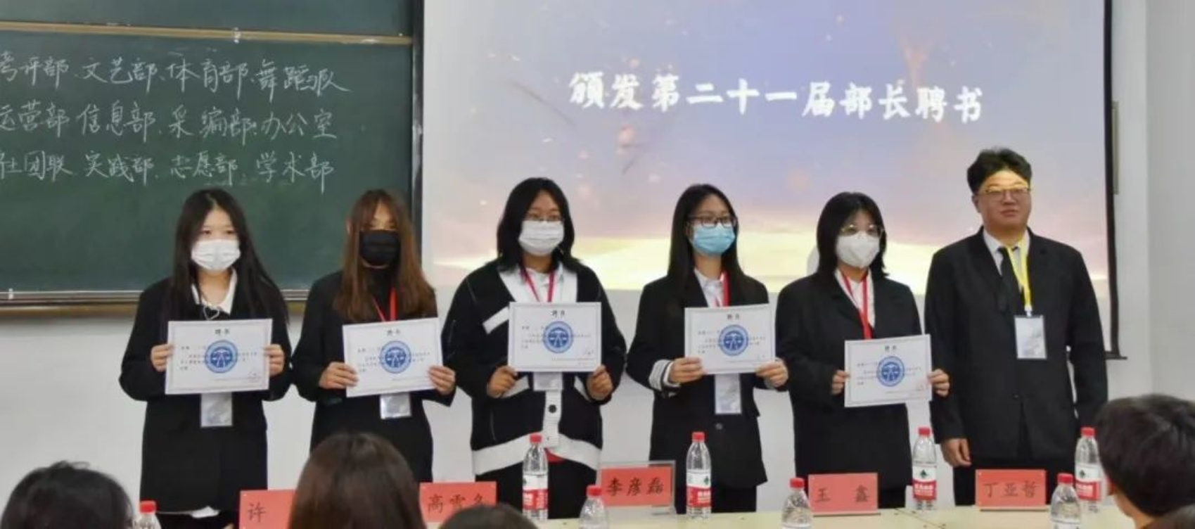 接下来就是激动人心的颁布聘书的时刻。由李彦磊副书记为第二十一届主席团颁发聘书,第二十一届员工组织主席团成员为李云苇、杨宇凡、张想、刘佳琪、李明昱、纪弈舟、韩新泽。