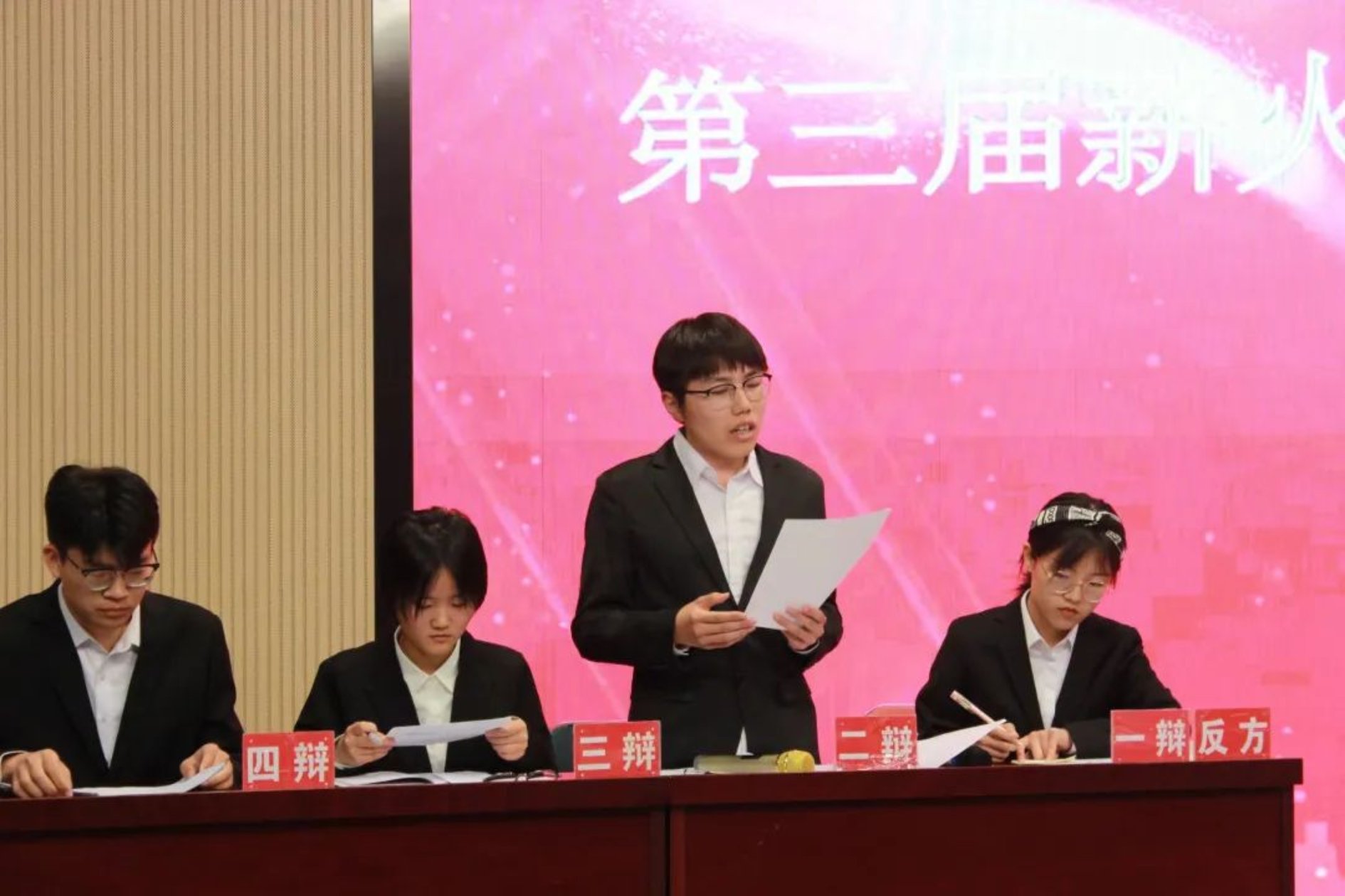 本场比赛辩题是“人生应似庭前花开落还是飞鸿踏雪泥”。本场比赛的正方是经管君和辩论队,他们的观点是“人生应似庭前花开落”,人生贵在眼前的小确幸,所谓“非淡泊无以明志,非宁静无以致远”,人应把握当下的时光;反方是文法求知辩论队,他们的观点是“人生应似飞鸿踏雪泥”,人生贵在远方的豪情,所谓“满堂花醉三千客,一剑霜寒十四州”,人生短暂,应如飞鸿一般,遨游广阔的天地。那么让我们跟随八位辩手,在思想碰撞的过程中去寻找答案。