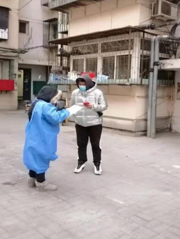 法学专业员工第二党支部党员郭鑫由于疫情原因未能返校,自天津迎战奥密克戎开始,她与社区工作人员、志愿者们一起入户走访,做好排查统计、了解每户的情况和需求,做好大筛前的准备工作。