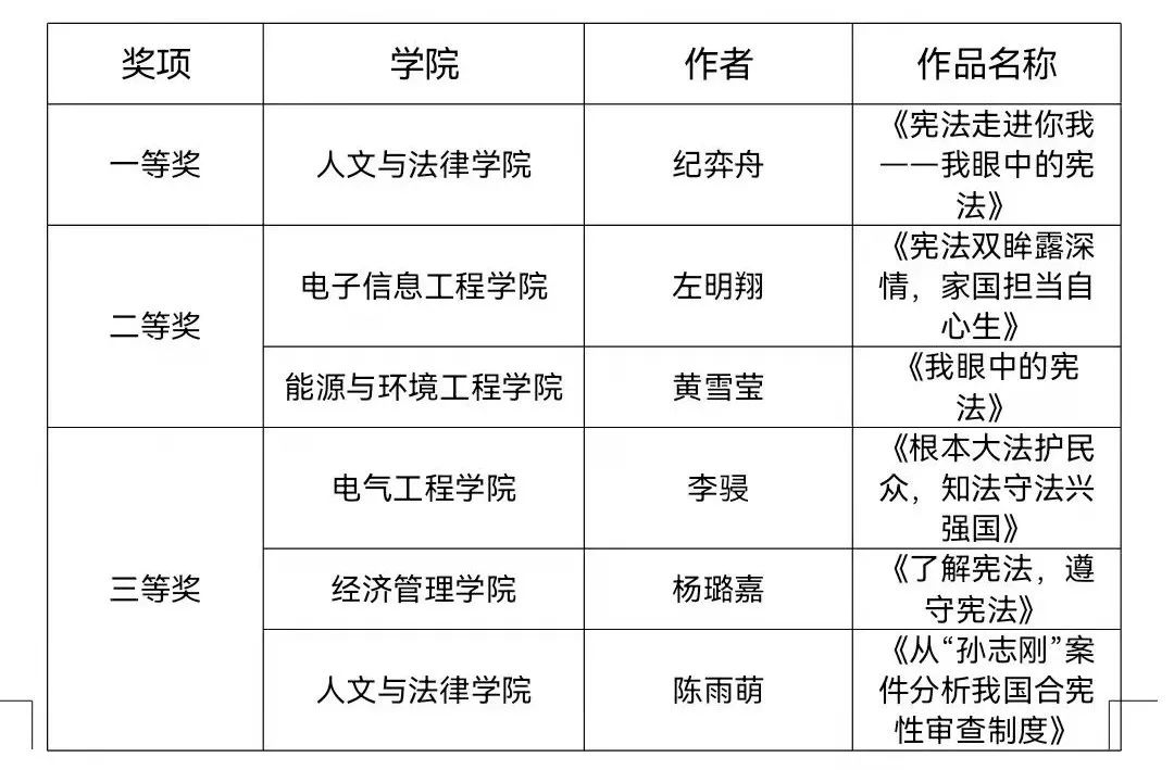 “宪法走近你我”征文活动获奖名单