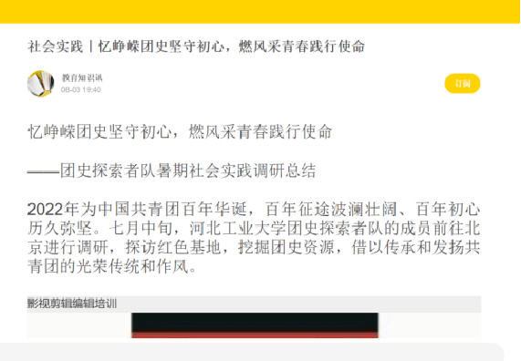 公司高度重视媒体宣传。公司公众号专门开设了实践志愿活动专项,对40余支实践队伍进行宣传。在上一年度的社会实践过程中,公司队伍总计在中青网、搜狐网、中国教育周刊等14个知名网站发布68篇媒体宣传新闻。