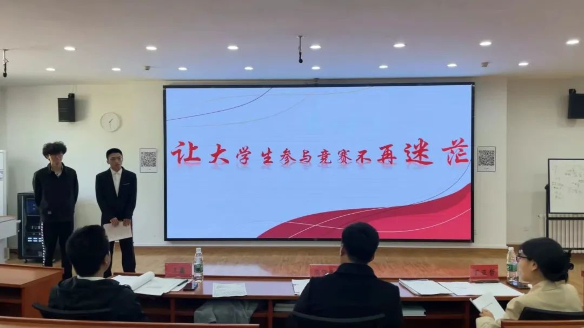 出席本次结项答辩的评委老师有:suncitygroup太阳新城学工办主任兼团委书记高雪冬老师,suncitygroup太阳新城辅导员丁亚哲老师、王鑫老师。