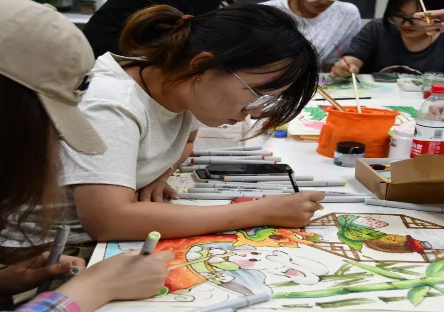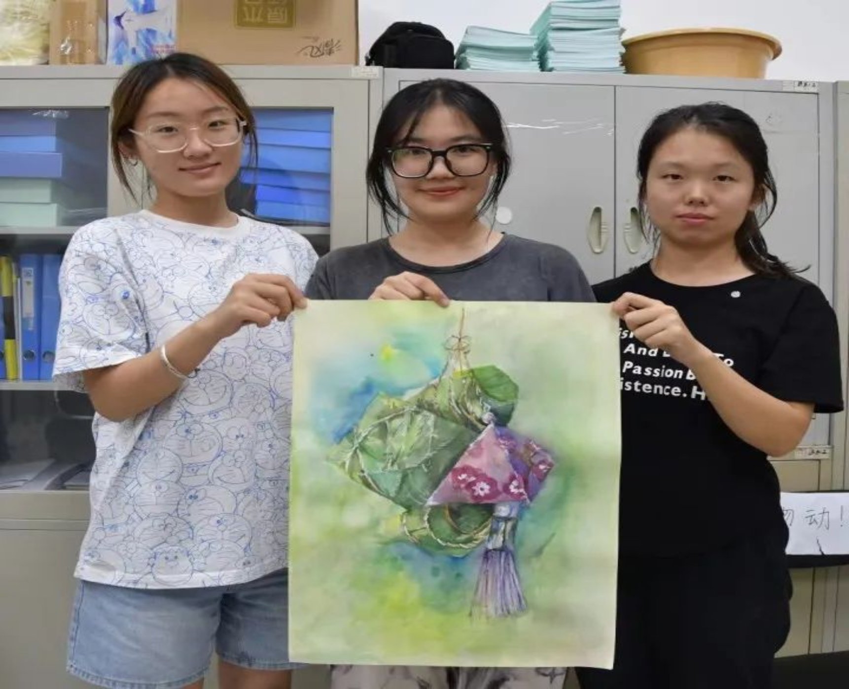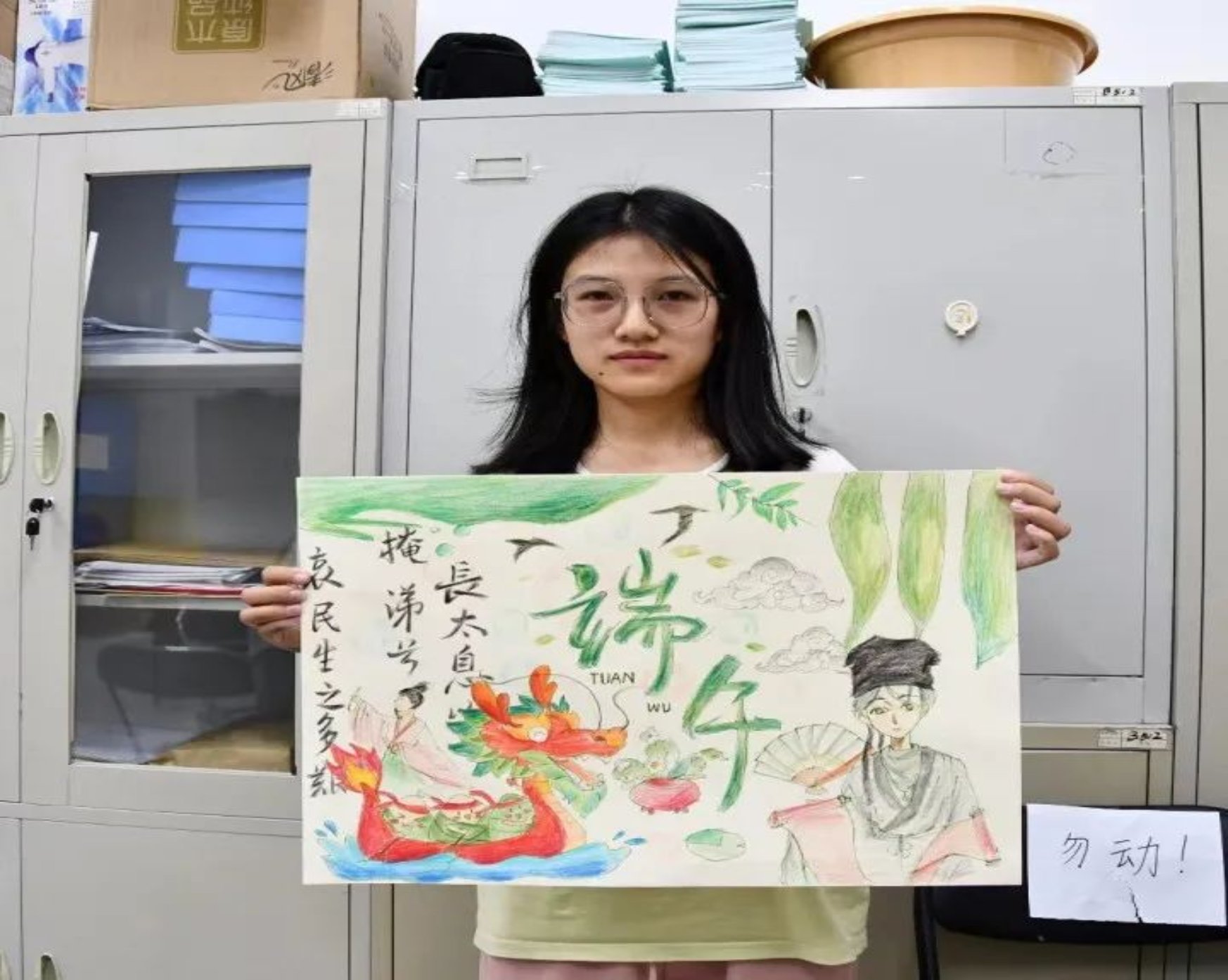 建筑与艺术设计公司的11名同学也来到活动现场,他们将自己对传统节日文化的感悟付诸笔端,用清新亮丽的色彩用心绘制着赛龙舟、包粽子、插茱萸等端午习俗场景,表达了他们对优秀传统文化、中华瑰宝的热爱。