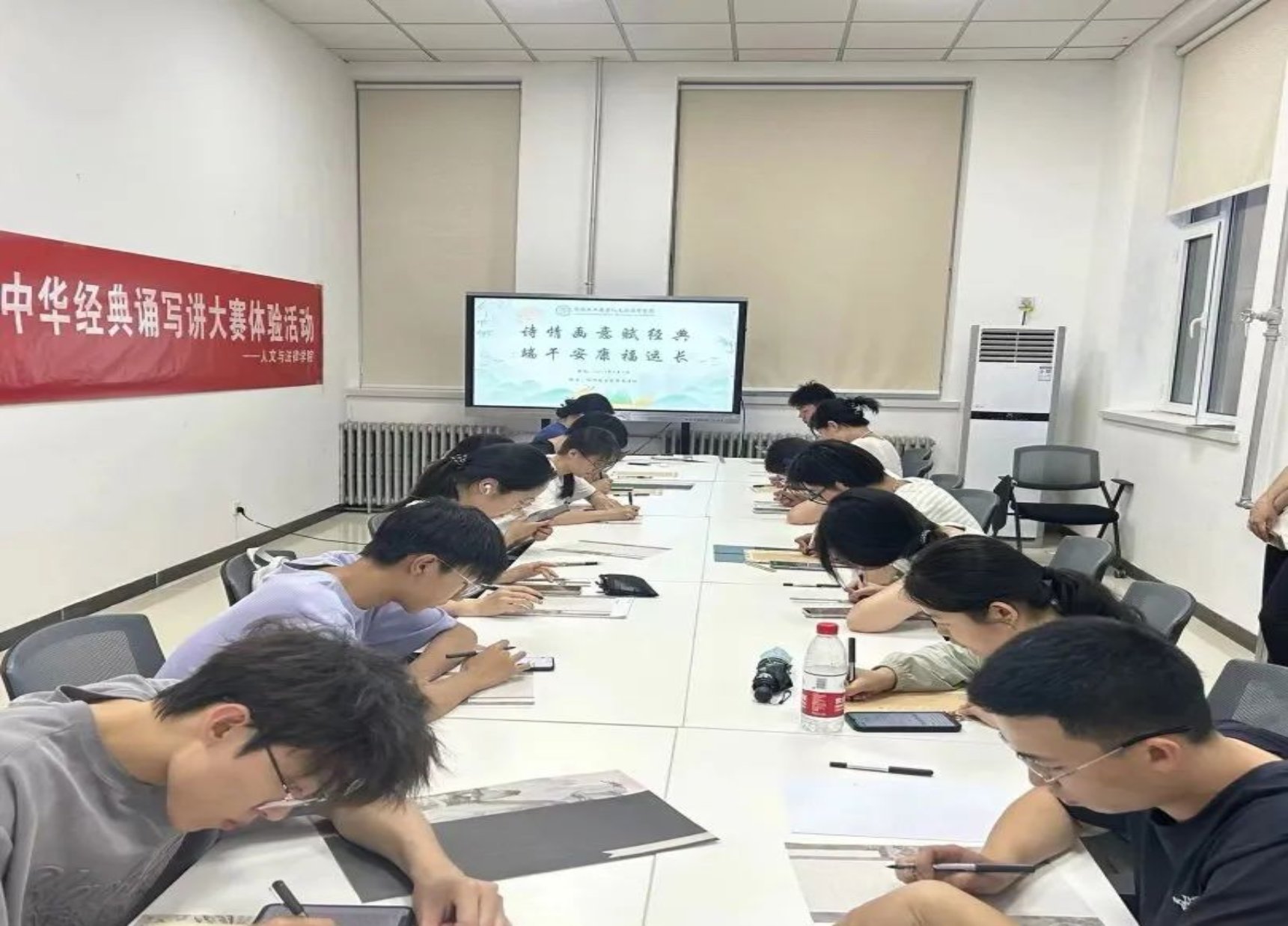 为激发广大学子们对中华经典文化的兴趣和热情,更好地了解中华优秀传统文化,提高他们对人文经典的学习自觉性和传承意识,suncitygroup太阳新城于6月5日晚7点在文法楼举办了中华经典诵写讲体验活动。活动以线下方式进行现场书写、绘画和篆刻,公司为参与者们提供了品类齐全的书画及篆刻材料,近300名同学参加了活动,现场气氛热闹非凡。