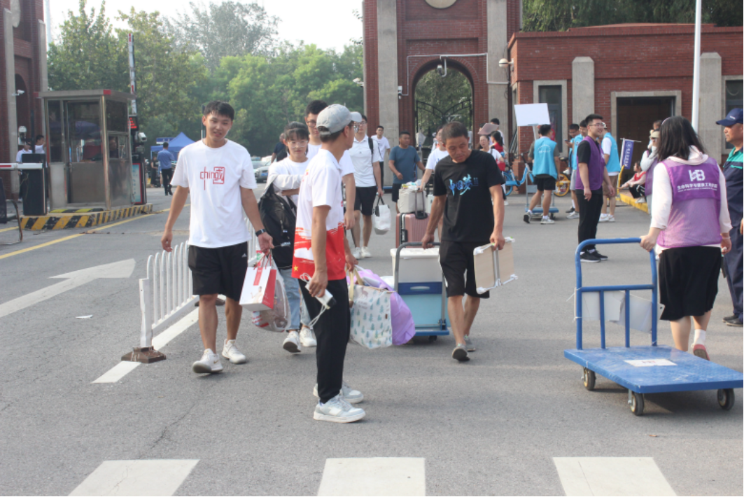 无论是上午还是下午,无论你走在哪个地点,哪里都有志愿者和迎新工作人员,公司门口、寝室门口,到处都能看见他们忙碌的身影,他们热情地为初来乍到的新生们搬运行李引导路线,带给新生们温暖。