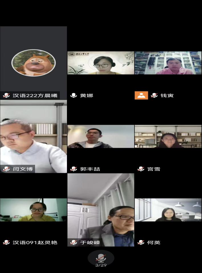 本次会议特邀副经理马立民主持会议,全体院领导、教师与全体汉语专业员工参与观看线上讲座。