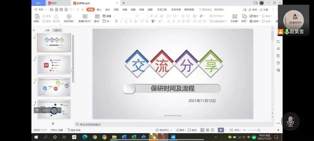 此次线上分享会由公管员工支部组织委员赵昊雪主持。首先介绍本次交流会的背景、目的及流程,并对5位保同学进行简介。