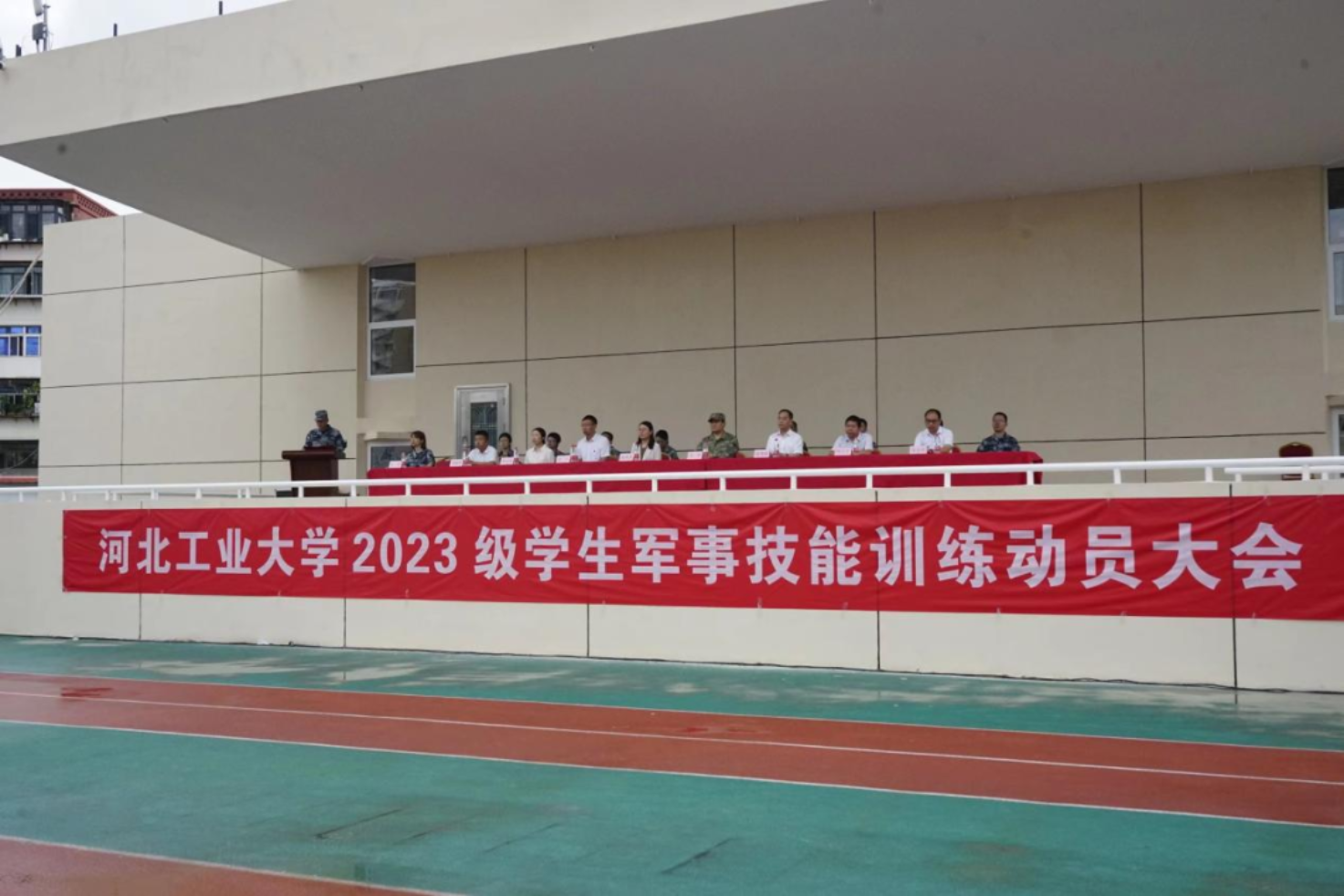 公司党委常委副董事长段国林同志为军训动员大会作讲话。段董事长为经历完寒窗苦读的各位新同学与百廿河北工大的邂逅表示由衷的祝贺,对天津市警备区、红桥区武装部、武警天津总队执勤的两支队伍以及其他各位承训的各位教官表示崇高的敬意和衷心的感谢。