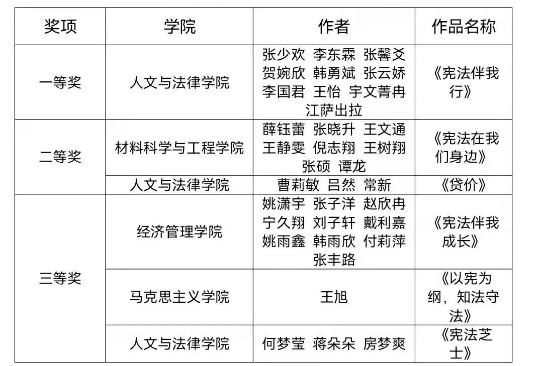 “宪法走近你我”征文活动获奖名单