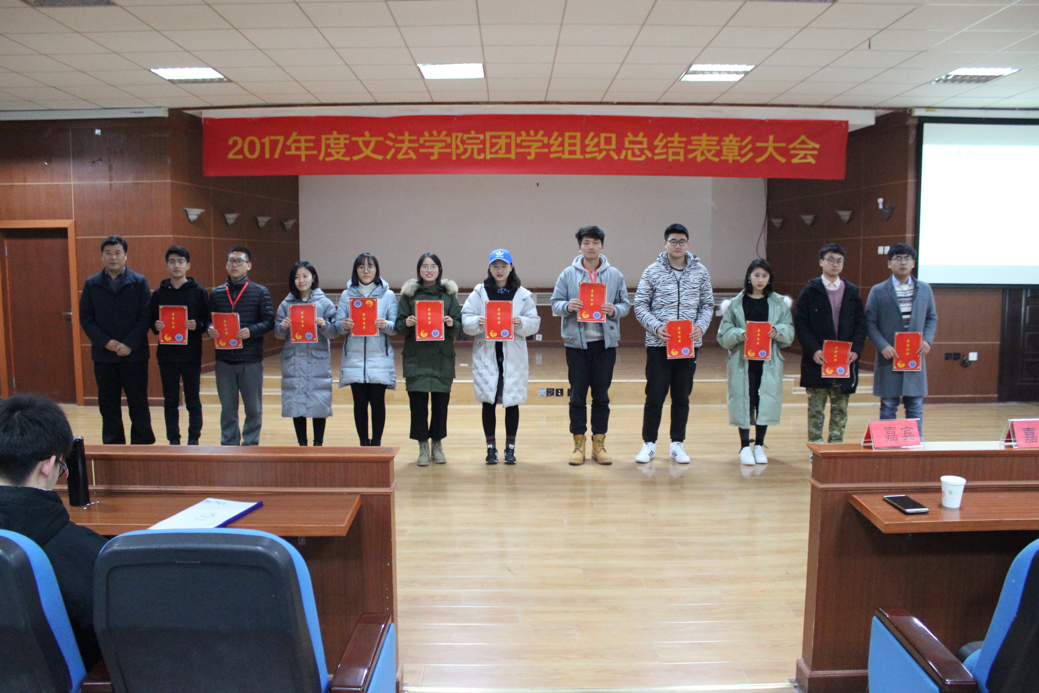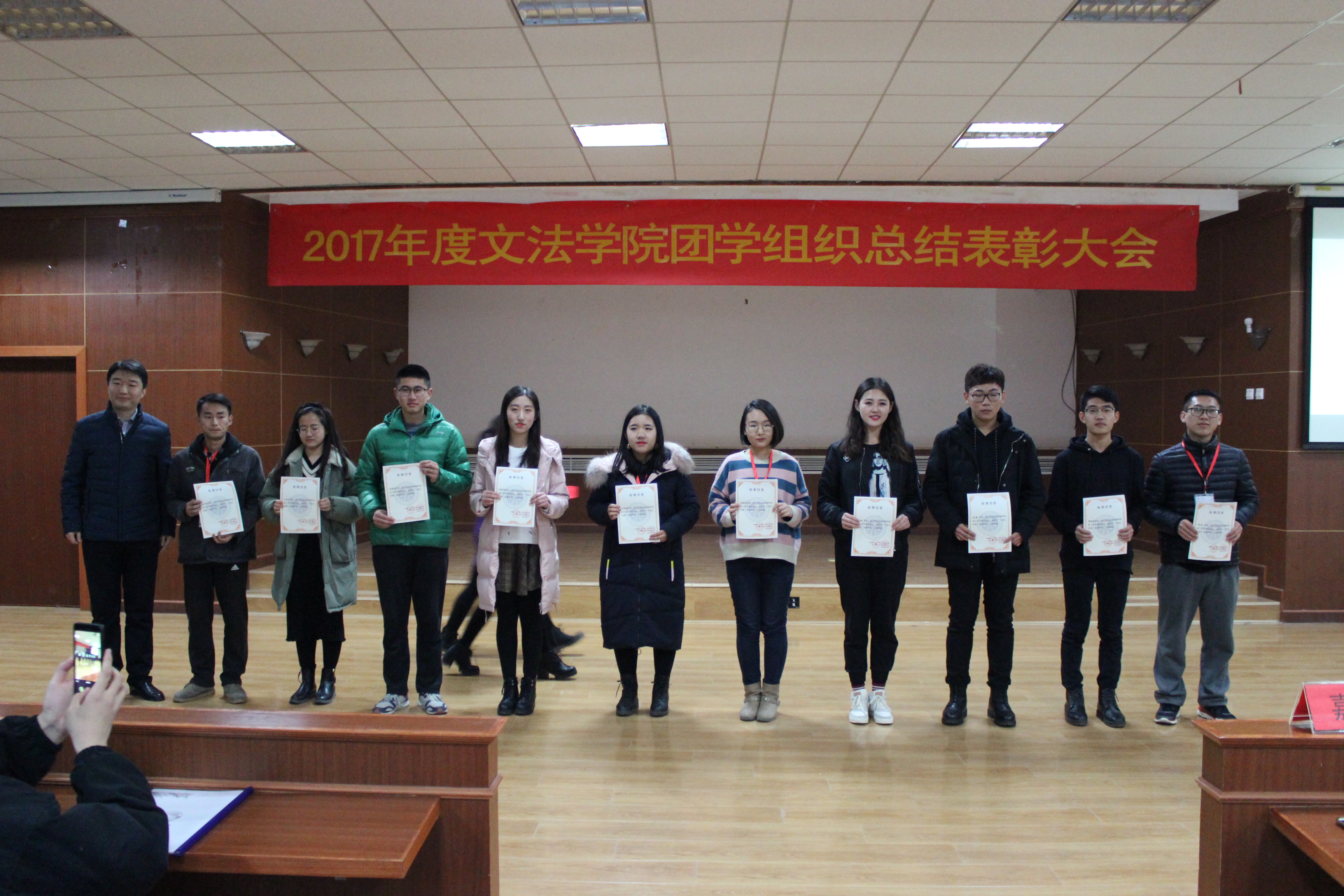 总结表彰大会在温情的歌声中缓缓落幕,我们回顾了团学组织光辉的过往,也获得了未来发展的宝贵经验。过去的半年,是团学组织砥砺奋进的半年,这期间我们见证了团结的力量,见证了个人的成长。团学组织要紧跟时代步伐,它的建设与创新对老员工成长、成才,以及对员工整体发展意义深远,为此我们定会继往开来,不断探索。冬日凌寒使人抖擞奋发,文法学子志在峰巅,不会陶醉在沿途的某个脚印之中。在未来的日子里,我们会齐心协力,锐意进取,用目标提升热忱,用毅力磨平高山,用更高的姿态铸就新的辉煌。漫漫前路,何妨吟啸且徐行!