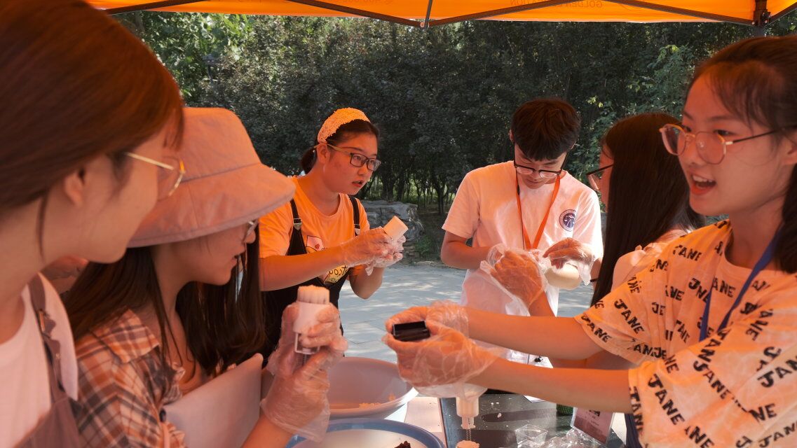 最受员工们欢迎的就是自己动手做月饼的环节。月饼象征团团圆圆,自己动手制作的月饼更是别具风味。在各个摊点,同学们围坐在桌旁,选择自己喜欢的馅料放入冰皮中,再用模具进行制作。现场很快排起了长龙。自己做月饼的活动激发了同学们动手的兴趣,也让中秋的节日气氛变得更浓。