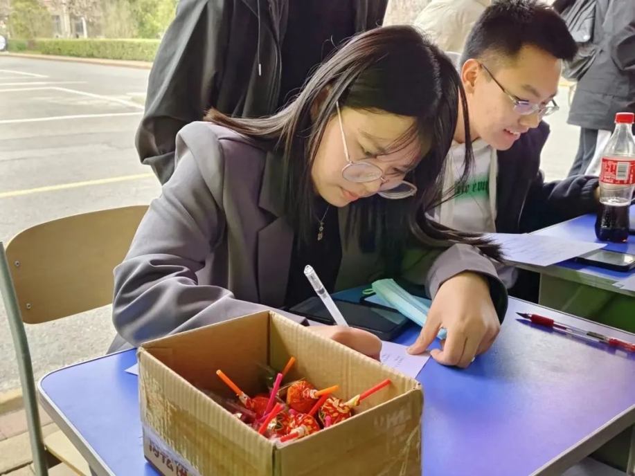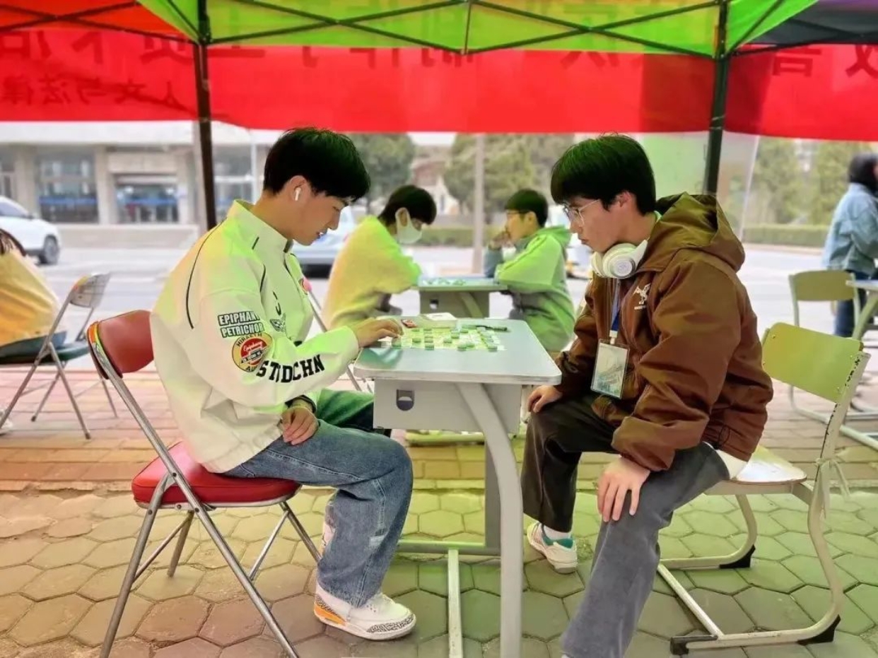 横竖纵横局中山河、乌鸦鹭鸶捭阖无忌。同学们执子弈棋,眼神笃定若有所思,行一步想三步。今天的比赛里,没有人执着输赢,每一手都在向母校祝福。紧张刺激的竞技性比赛氛围和充满趣味性的比赛形式,对坐共弈的人一个一个轮换,落子不悔,肆意穿插于世之大局。