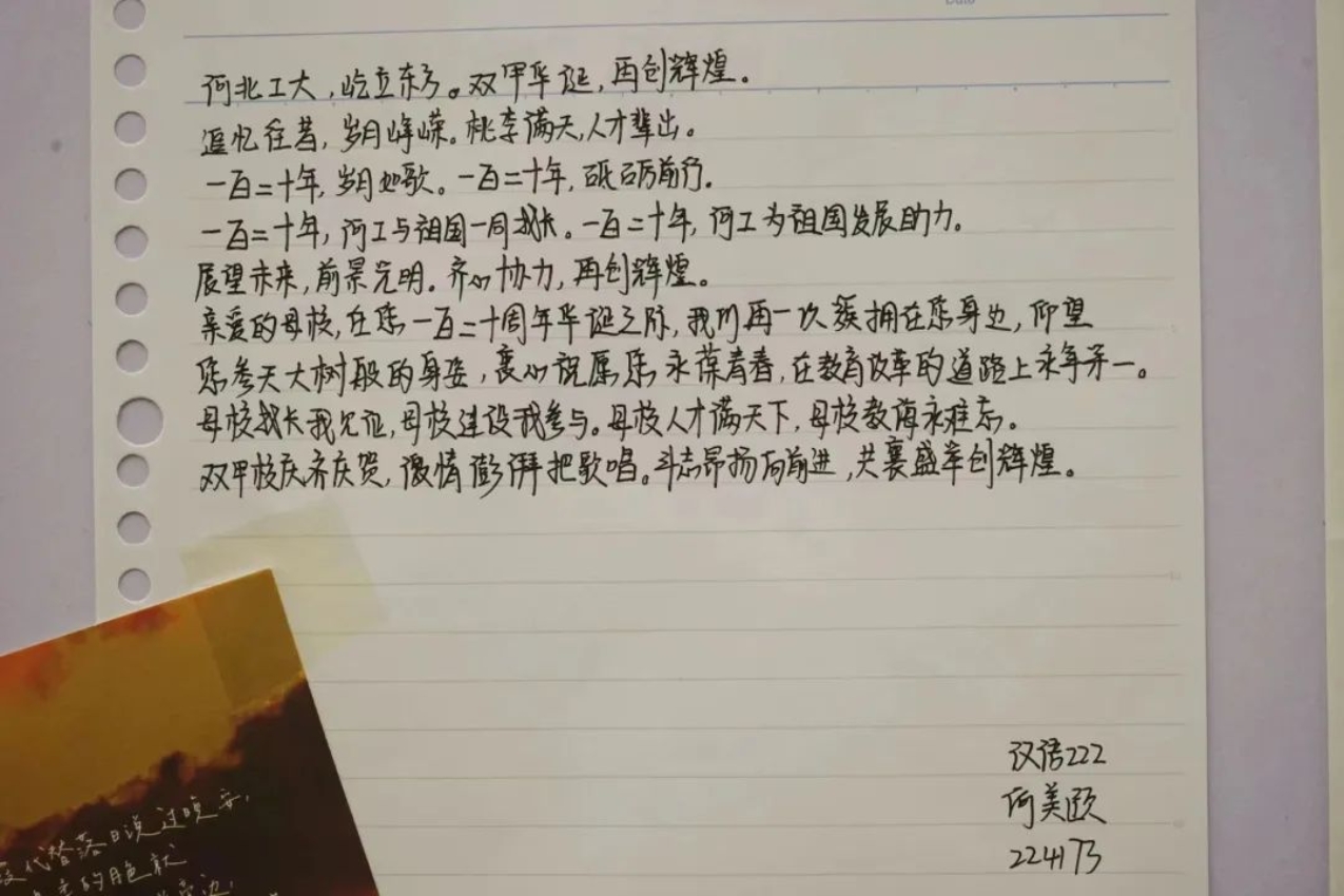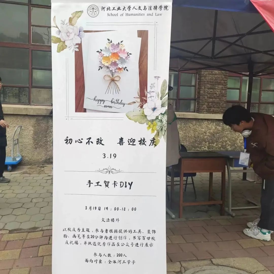 云雨浸润青城岁月,积淀下深厚底蕴;风霜打造今日辉煌,唱响出精彩华章。年轮转过,你成就了我,我延续了你。大家都有着独属于自己的河工大记忆,都有着对母校最真挚热烈的感情。一张张DIY贺卡,倾诉了大家内心对母校的万千情谊,为公司百甘献上这份珍贵的贺礼。活动现场上挤满了人群,同学们排起了队伍,都想通过贺卡送上自己的祝福。一张张小小的贺卡,承载着我们对母校深深的爱意。