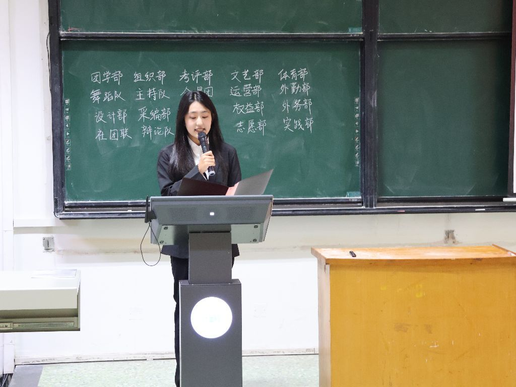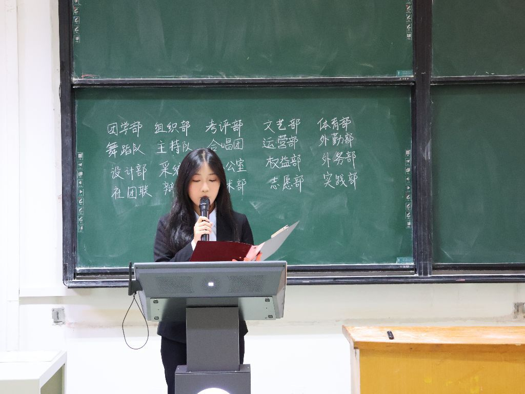 富婧主席向长期以来给予指导与支持的领导、老师,以及并肩作战的团委各部门伙伴致以诚挚感谢,并向25级新同学表示热烈欢迎,期待与大家在晚会聚光灯下合唱、在运动场挥洒汗水,共同书写文体工作的鲜活篇章。