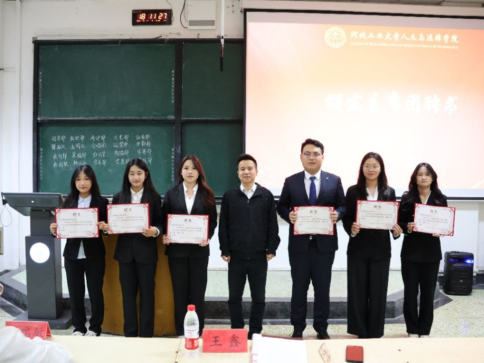 在振奋人心的氛围中,王鑫老师,高瑞敏老师,以及新一届主席团成员依次为各部门部长颁发聘书。