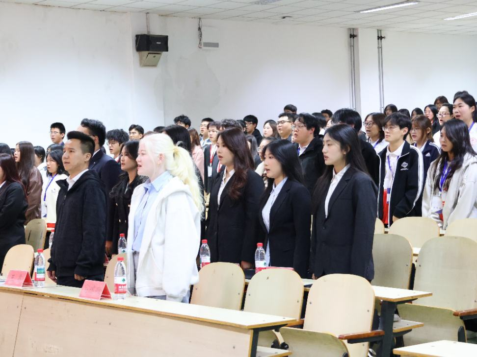 大会在庄严的国歌声中拉开帷幕。全体与会人员肃立、奏唱国歌,激昂的旋律凝聚着师生同心、共启新程的坚定信念。