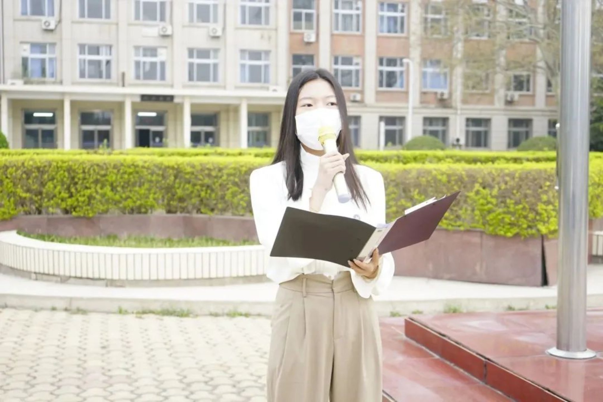 接下来员工代表公管222班姜一涵同学上台演讲。她首先回忆往昔,讲述在那个血雨腥风、金戈铁马的时代是革命先烈为民族独立和国家尊严而誓死抗敌献出了宝贵的生命;为彻底埋葬旧世界,建立社会主义新中国而前赴后继、英勇作战,抛头颅、洒热血。又是一年清明时,又到一年英雄祭。那一个个把生死置之度外的烈士,那些在战场上拼死杀敌的身影,岁月和人民没有忘记。