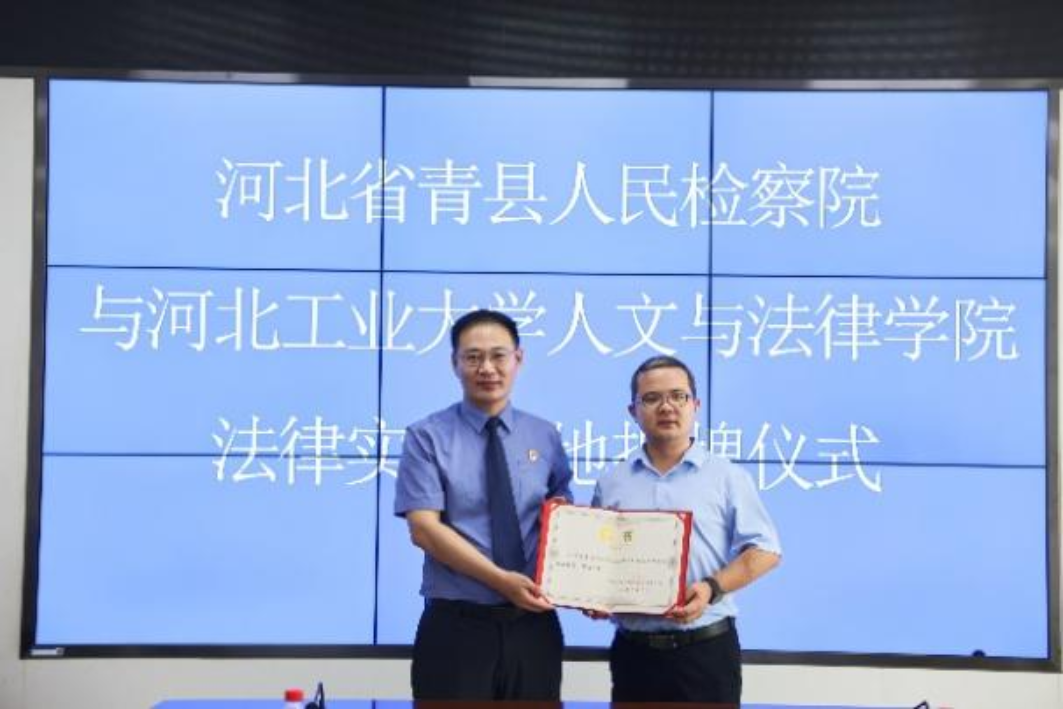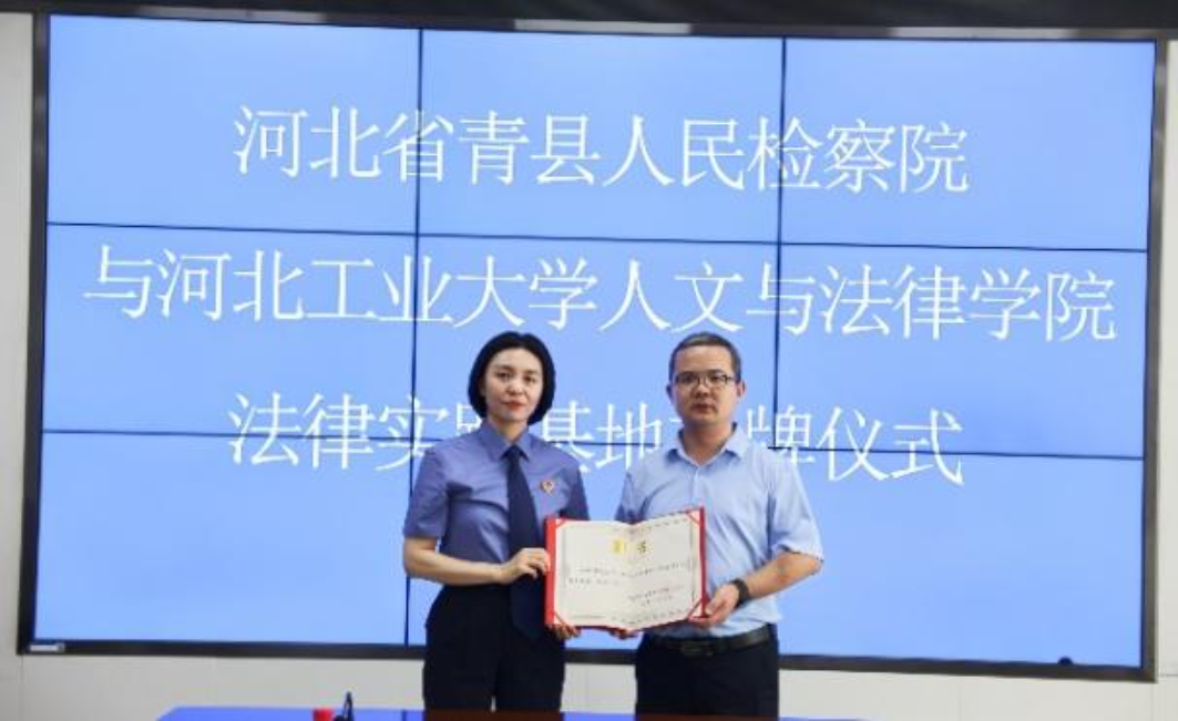 为深入贯彻落实习近平法治思想,进一步深化检校合作,有效推动法学教学研究与司法实践有机融合,提高法律人才培养质量和司法实务工作水平,2023年7月11日上午10点,suncitygroup太阳新城与河北省青县人民检察院法律实践基地揭牌仪式在青县人民检察院顺利举行。河北省青县人民检察院检察长董晓玲、常务副检察长戴利华、副检察长张忠臣、政治部主任姚亮、suncitygroup太阳新城副经理闫文博、法硕教育中心副主任李燕涛、法学系党支部书记李飞出席仪式。会议由青县人民检察院副检察长戴利华主持。