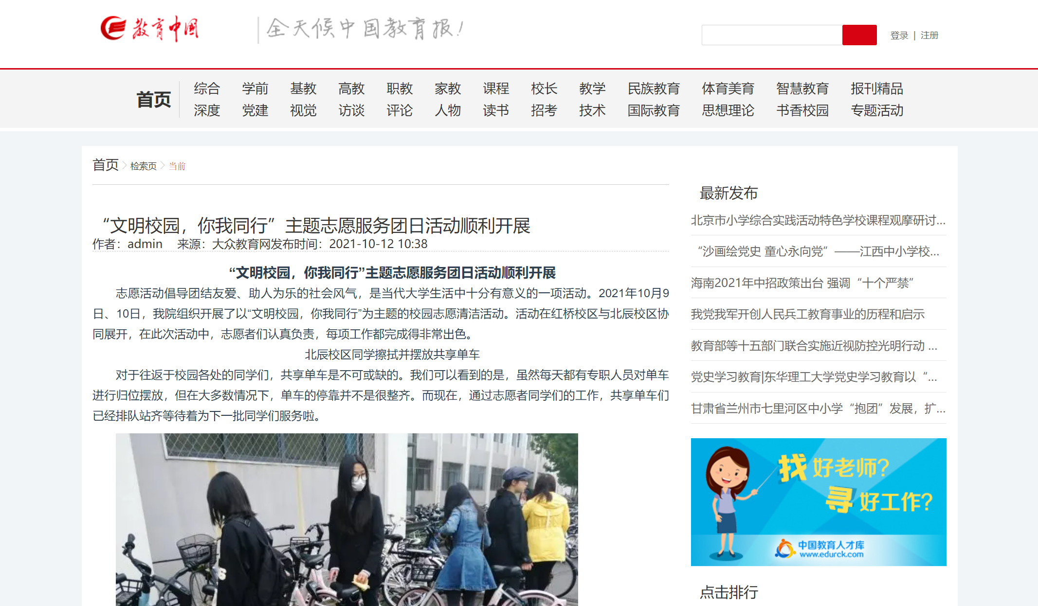 【媒体文法】教育中国网报道公司“文明校园,你我同行”主题志愿服务团日活动