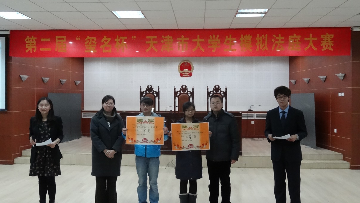 这是冰晶老师在2013年9月的天津市模拟法庭比赛中为获奖选手颁奖的一张照片。谈及到这张照片时,蒋老师笑靥如花。老师告诉我们一直以来公司的实践课程体系都较为完善,那次的天津市模拟法庭大赛是由公司的法律协会承办的,举办地点亦设公司。河工学子们通过学习“模拟法庭”课程,充分了解了模拟法庭的程序,在比赛中取得了优异的成绩。