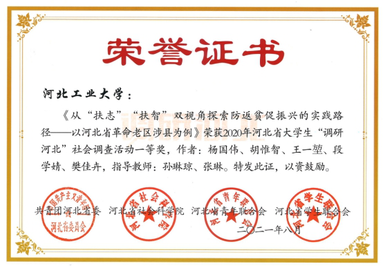 在调研河北中,公司8支队伍成功立项获奖,其中一等奖1项,二等奖2项,三等奖1项。