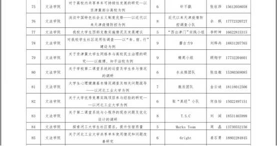 在上一学年,文法学院圆满完成了各项实践活动——寒暑假专项实践共组织45支队伍,其中国家重点队4支、省级队伍6支,参与员工342人次,占比45%;日常社会实践共组织20支队伍,参与人数156人;其他专项调研实践(调研河北、冀青调研)共组织37支队伍。