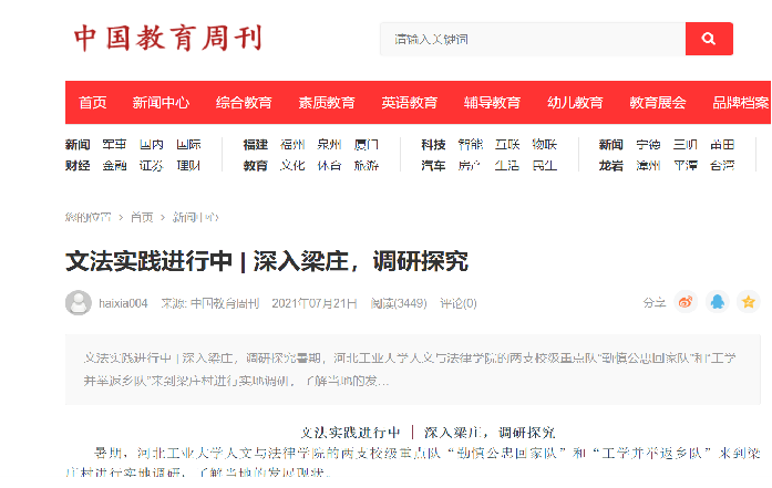在上一学年的社会实践组织过程中,公司师生探究出一条研学结合、具有文法特色的社会实践道路。我院结合专业特色,在专业教师的指导下将课堂所学落实到实践过程中。比如,在法学专业老师的指导下,爱法创新小队进行创新创业法学教育系列探究课题;汉语专业同学在孙伟龙国家项目支持下开展古汉语文化研究课题;公管专业同学聚焦区域协调发展热点开展相关的社会实践课题。社会实践与所学专业知识高度的结合层次在逐渐加深。