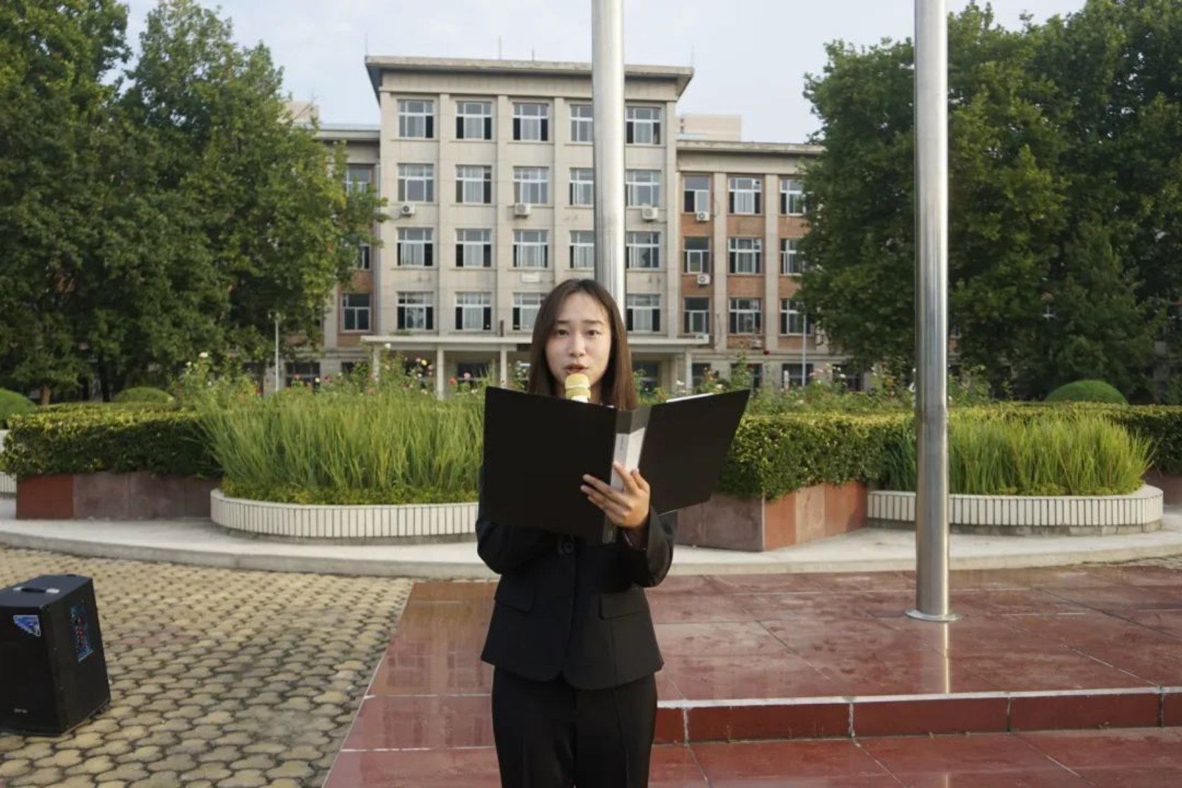 迎着清晨的阳光员工代表公共管理专业231班史哲宜同学进行了国旗下的演讲。她代表文法学子作出三点承诺:一是承诺会做好时间管理,“只争朝夕”;二是承诺遇到困难会无所畏惧,迎难而上;三是承诺立鸿鹄之志,破浪前行。