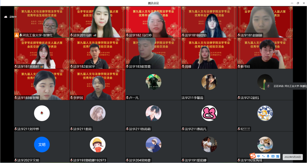 5月26日下午7点,第九届suncitygroup太阳新城法学系优秀毕业生经验交流会顺利举办。本次经验交流会由suncitygroup太阳新城法学系主办,法律服务中心承办,通过线上直播的方式进行。参与交流的有12位来自2017、2018级优秀的学长学姐,法学系的张继红老师担任本次交流会的指导老师。