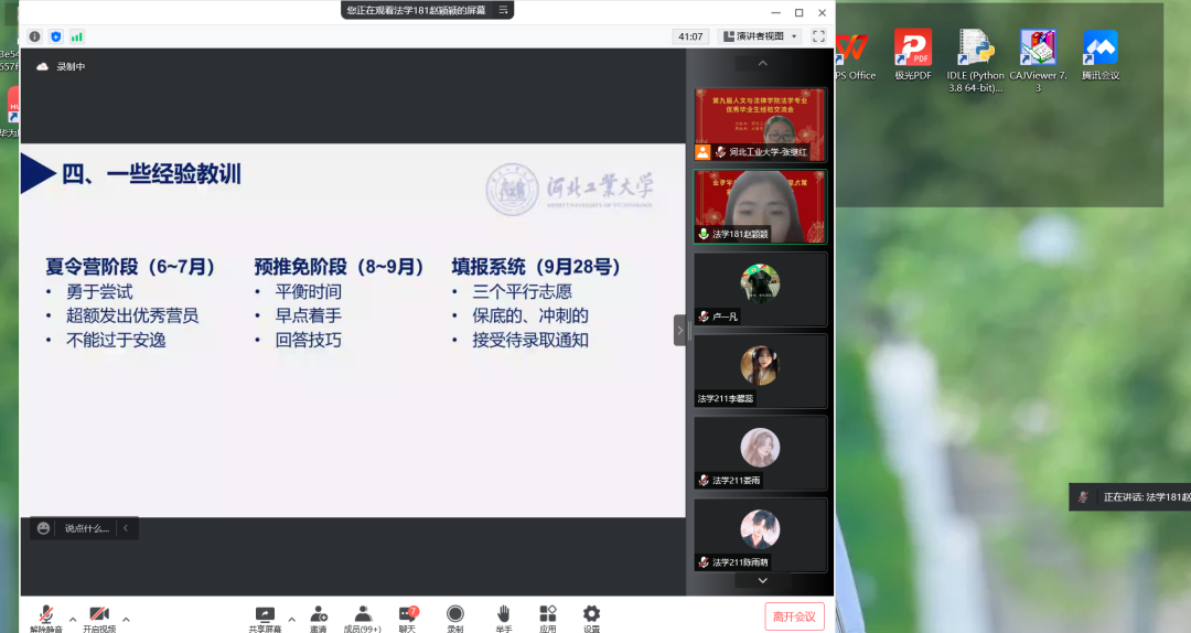 分享会之初,张继红老师向大家展示了18级学子的优异成绩:14人考研成功、9人保研成功、8人通过法考、2人出国。张老师也期盼未来的法学学子逐梦成功,再创辉煌。