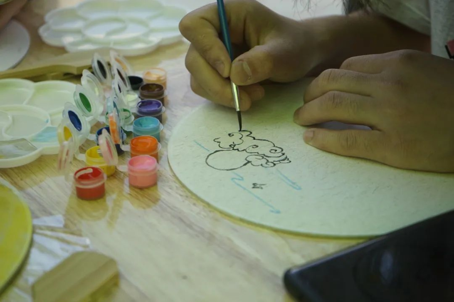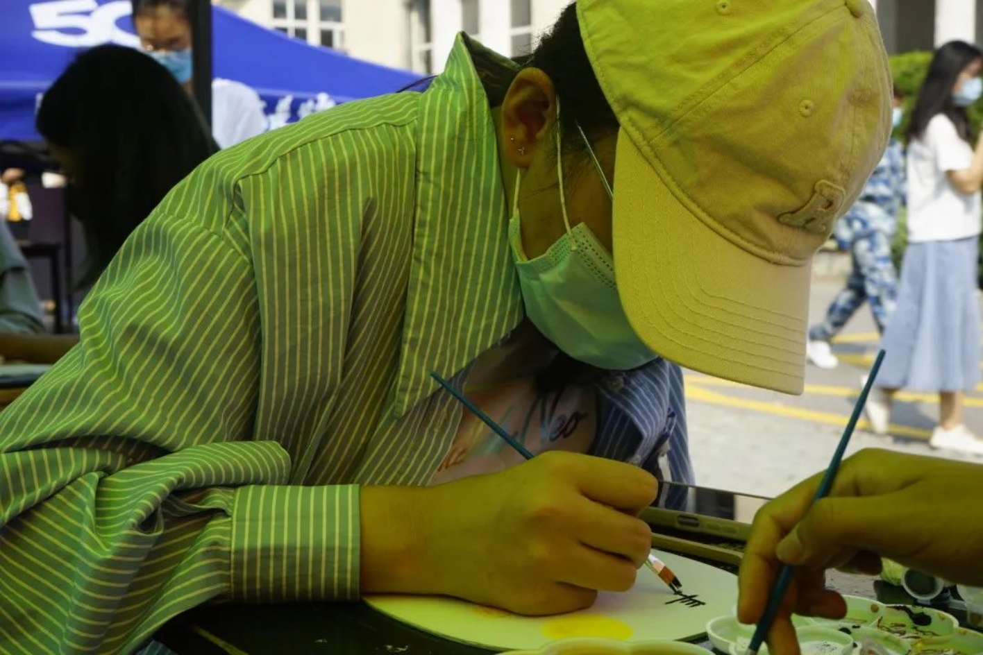 在活动过程中,同学们自己构思设计,用工具在扇面上进行绘画。员工们既秉持传统,又张扬个性,在短短的时间内,创作出一把把风格迥异的团扇,有的扇面展现着古典的清新淡雅,有的扇面展现着现代的绚丽多彩……一把把象征团圆与思念的美丽团扇就这样在员工手中诞生了,艺术之花在扇面上竞相绽放,素面团扇上绘出员工们心中的中秋诗意之美。