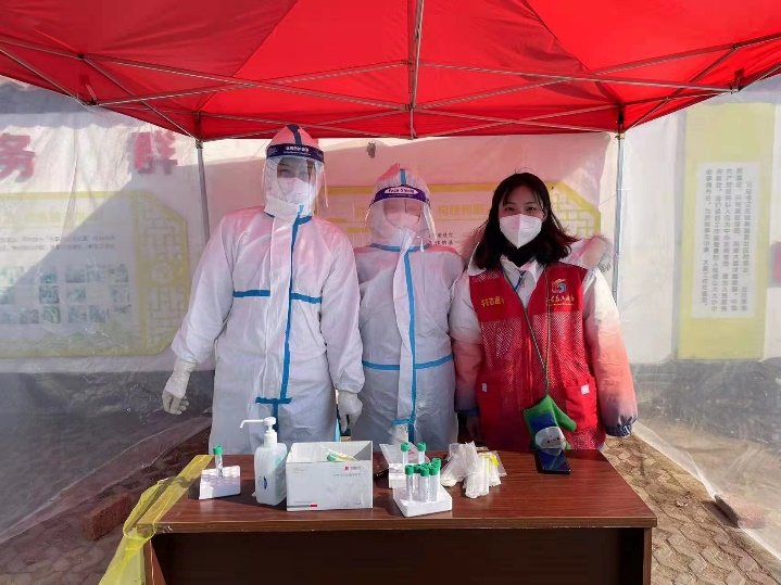 闫碧君是21级研究生,本轮疫情发生后,她主动报名参加志愿服务活动,成为一名检测员。闫碧君说:“作为老员工党员,组织有需要、家乡有需要,我义不容辞。”